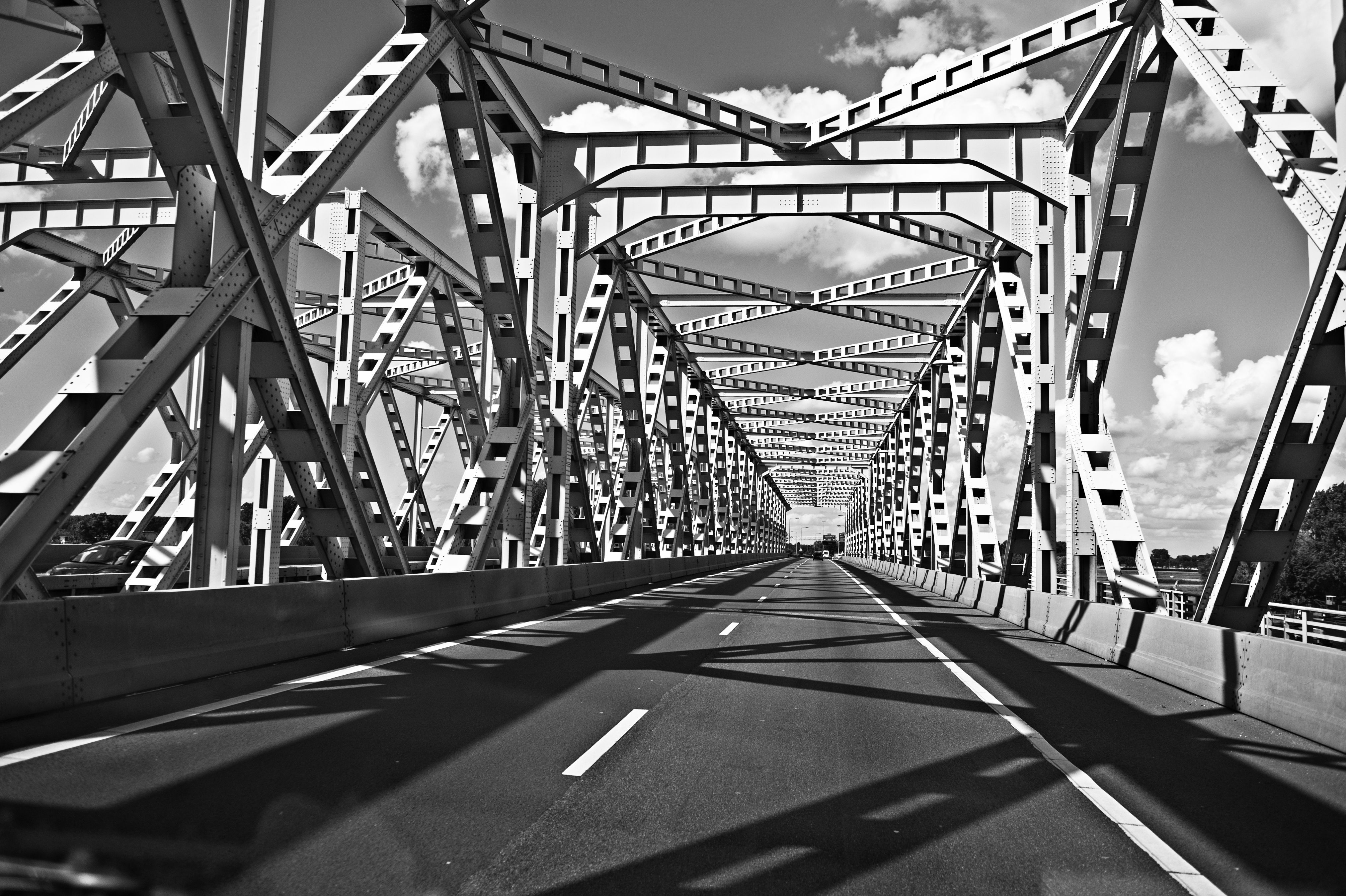 Onderweg na een klus. Brug A27 over de Bergse Maas, uit rijdende auto genomen.