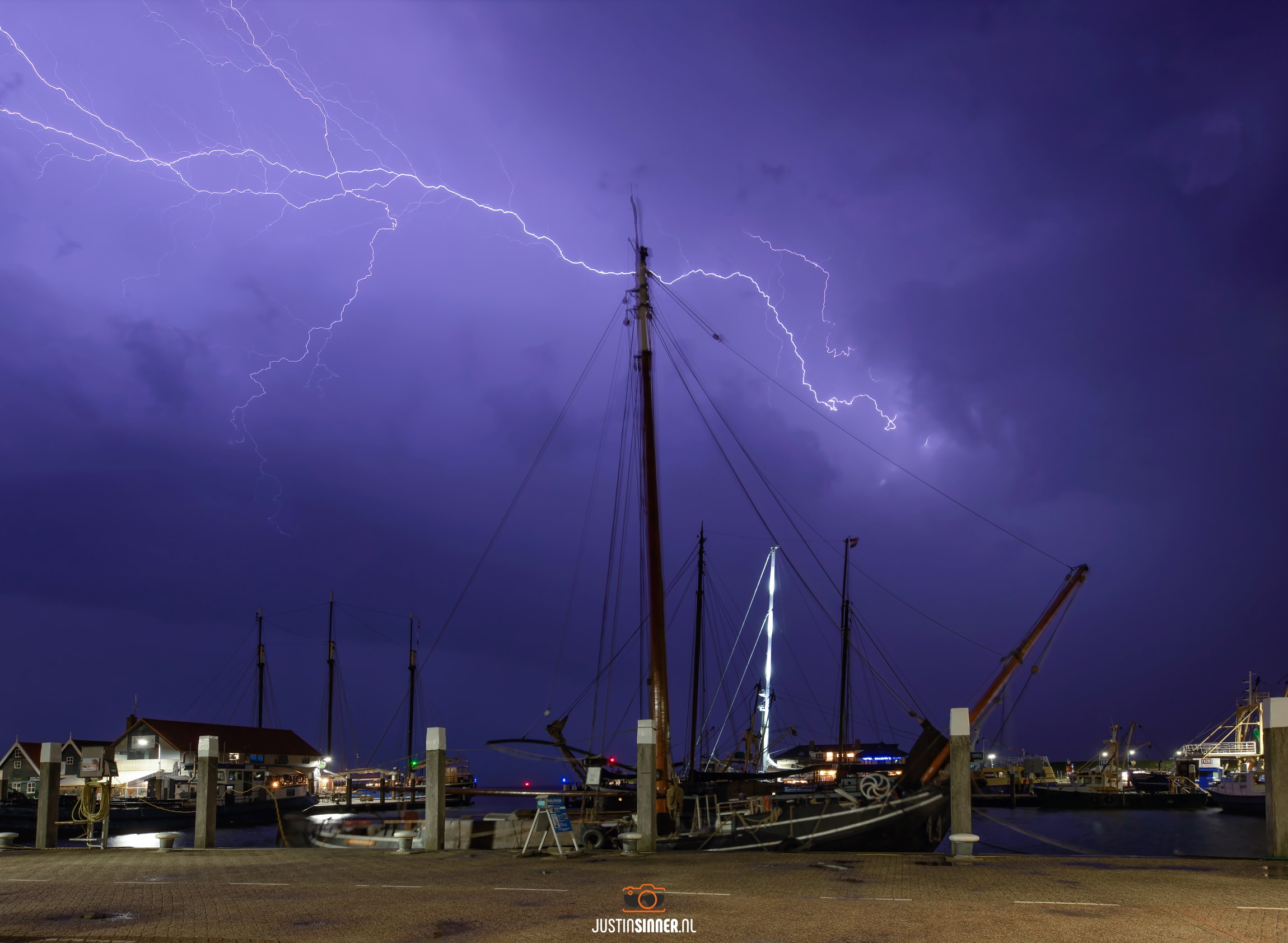 Gisteravond trok er een geweldige onweersbui over de Waddenzee, tussen de regenbuien door snel een foto maken en maar hopen dat de bliksem door het beeld schiet :) Haven van Oudeschild, Texel, rond 23:30 uur.