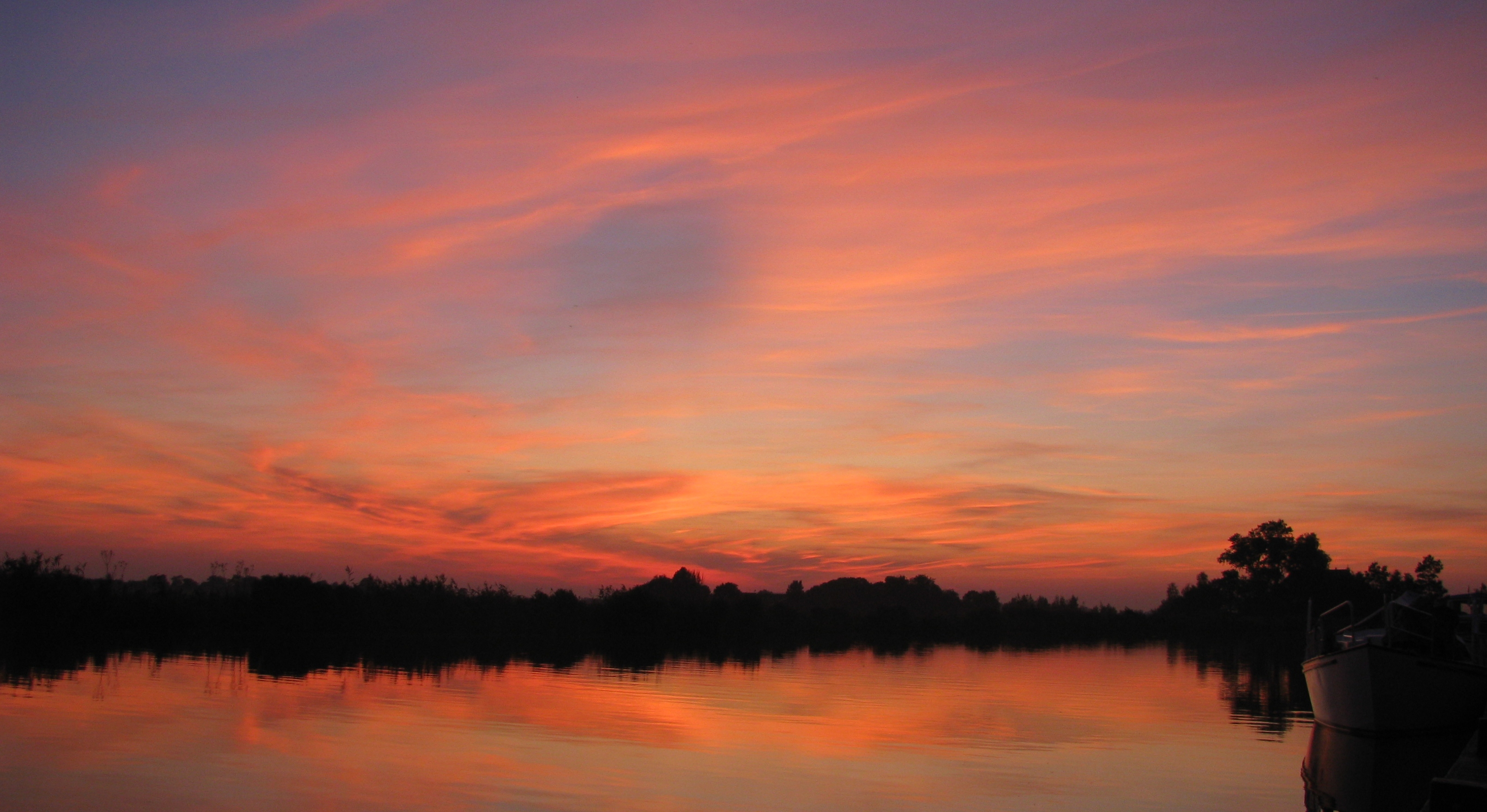 Een flinterdunne bewolking boven de Friese wateren, beschenen door de late zon (onbewerkt).