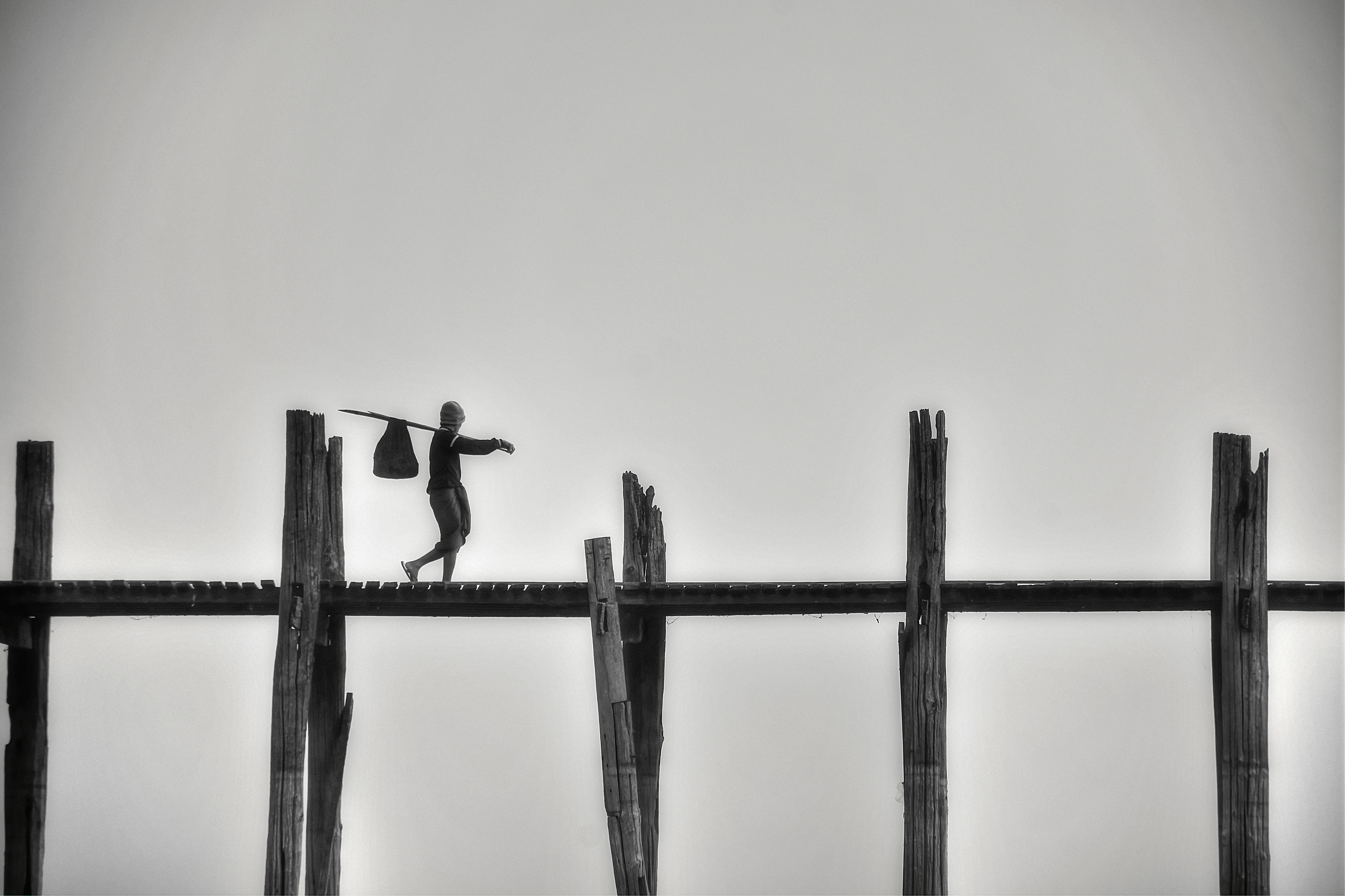 deze foto heb ik genomen in mandalay in myanmar… waar ze nog ouderwets met een stok en zak op avontuur gaan.