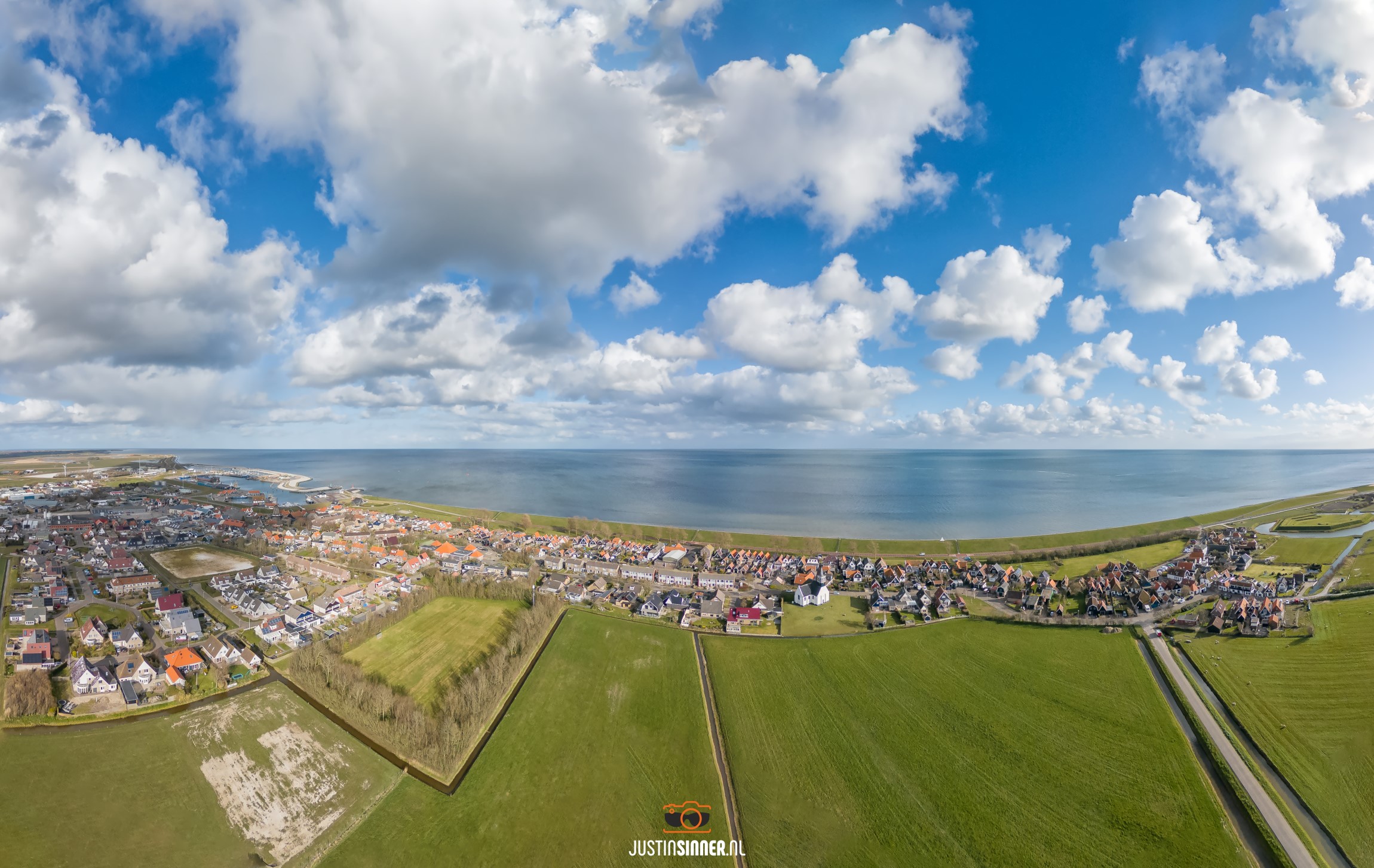 Het is de afgelopen dagen prachtig weer om met de drone te werken, prachtige wolkenluchten en kleuren. Op deze foto Oudeschild op Texel van top tot teen, mooi gelegen aan de Waddenzee.