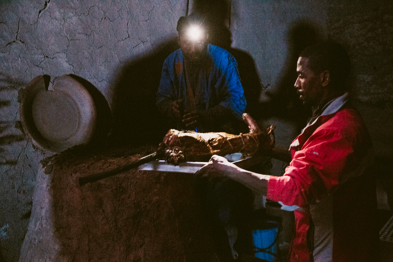 Our host is getting the meat out of the traditional grill