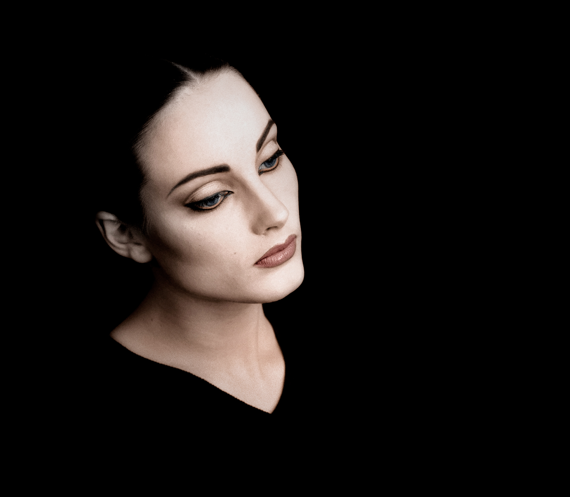 Met zwarte doek als achtergrond bij een raam dit portret gemaakt.