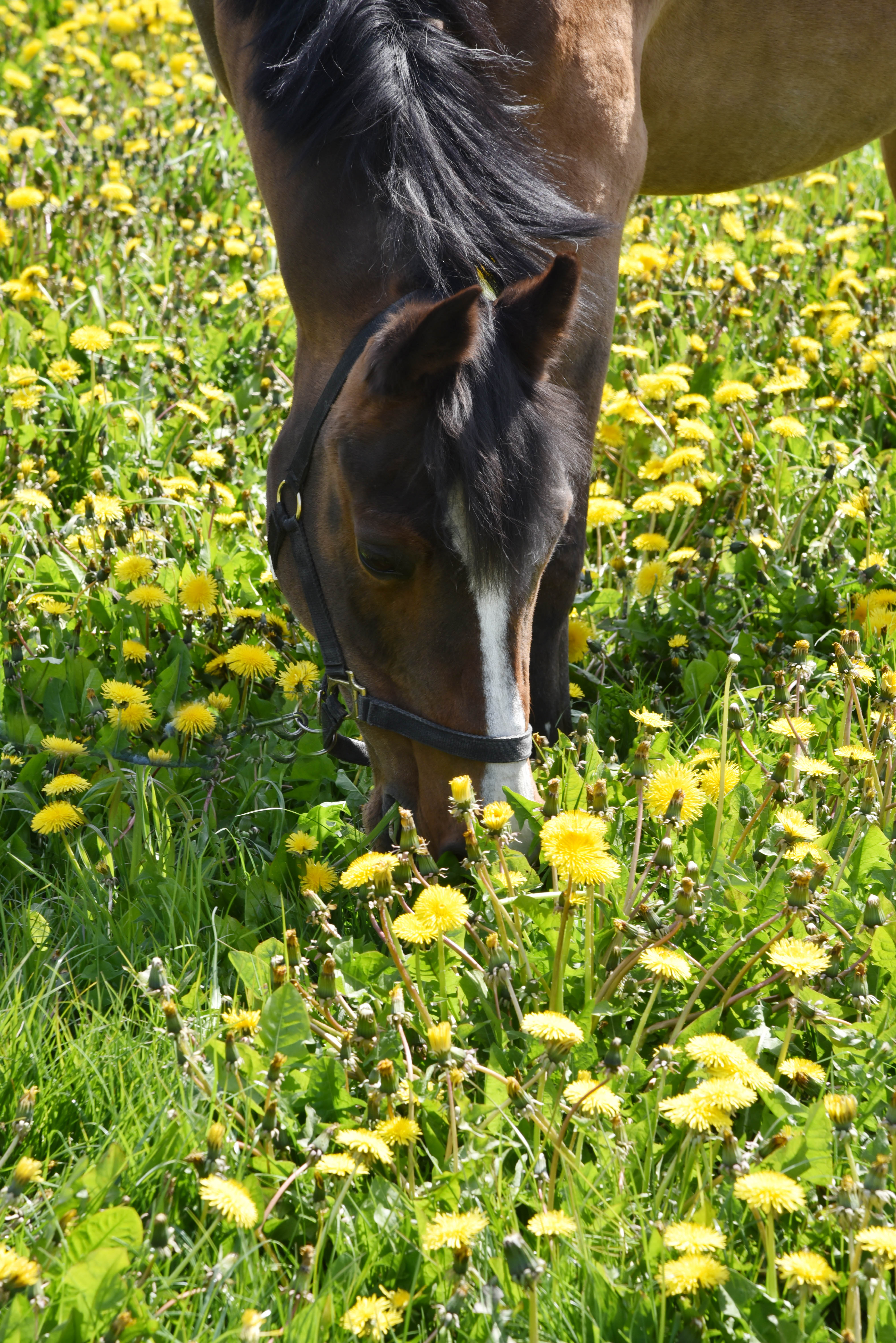 Paard en paardenbloemen