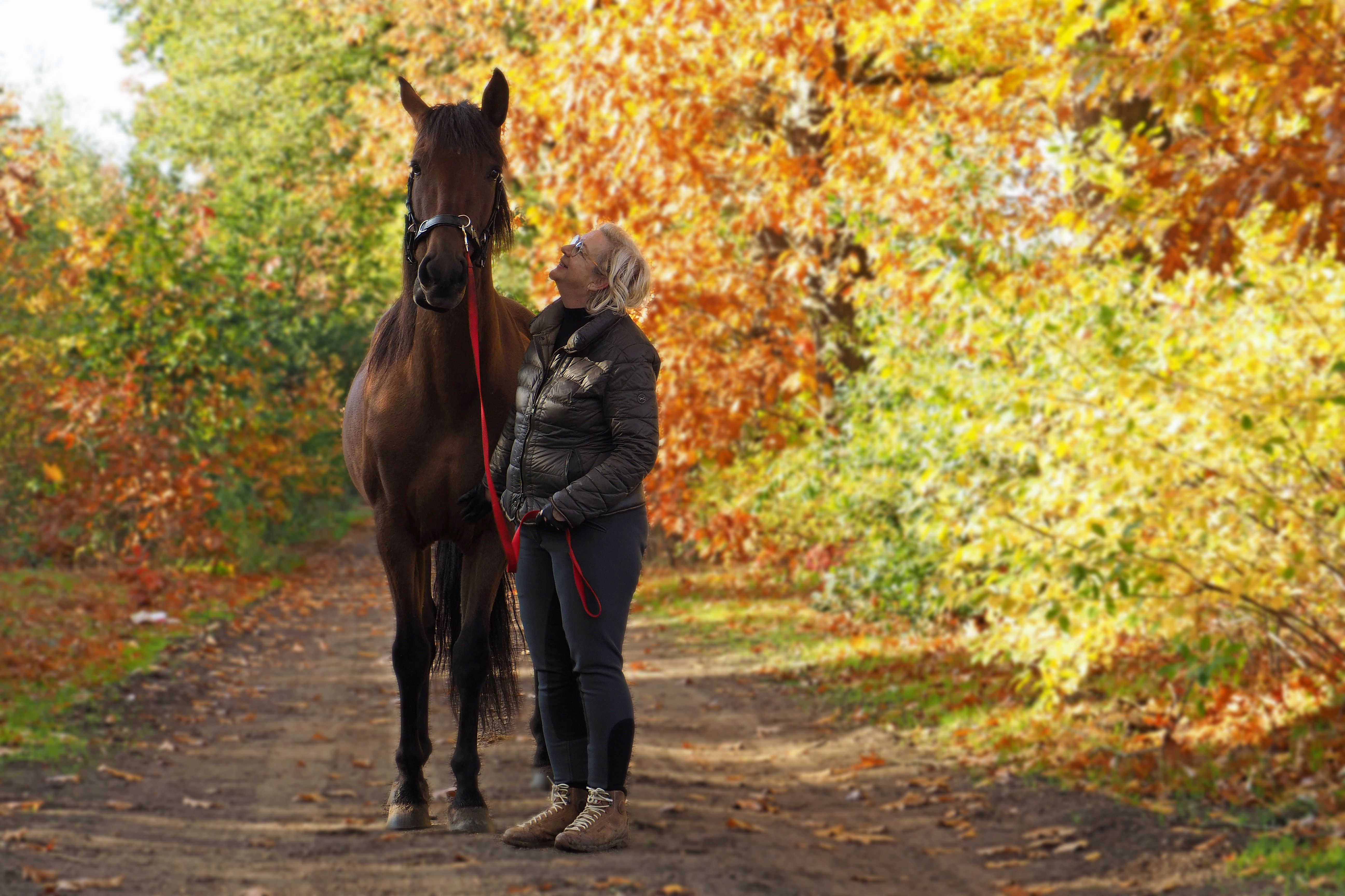 Vrouw aan wandelen met paart
