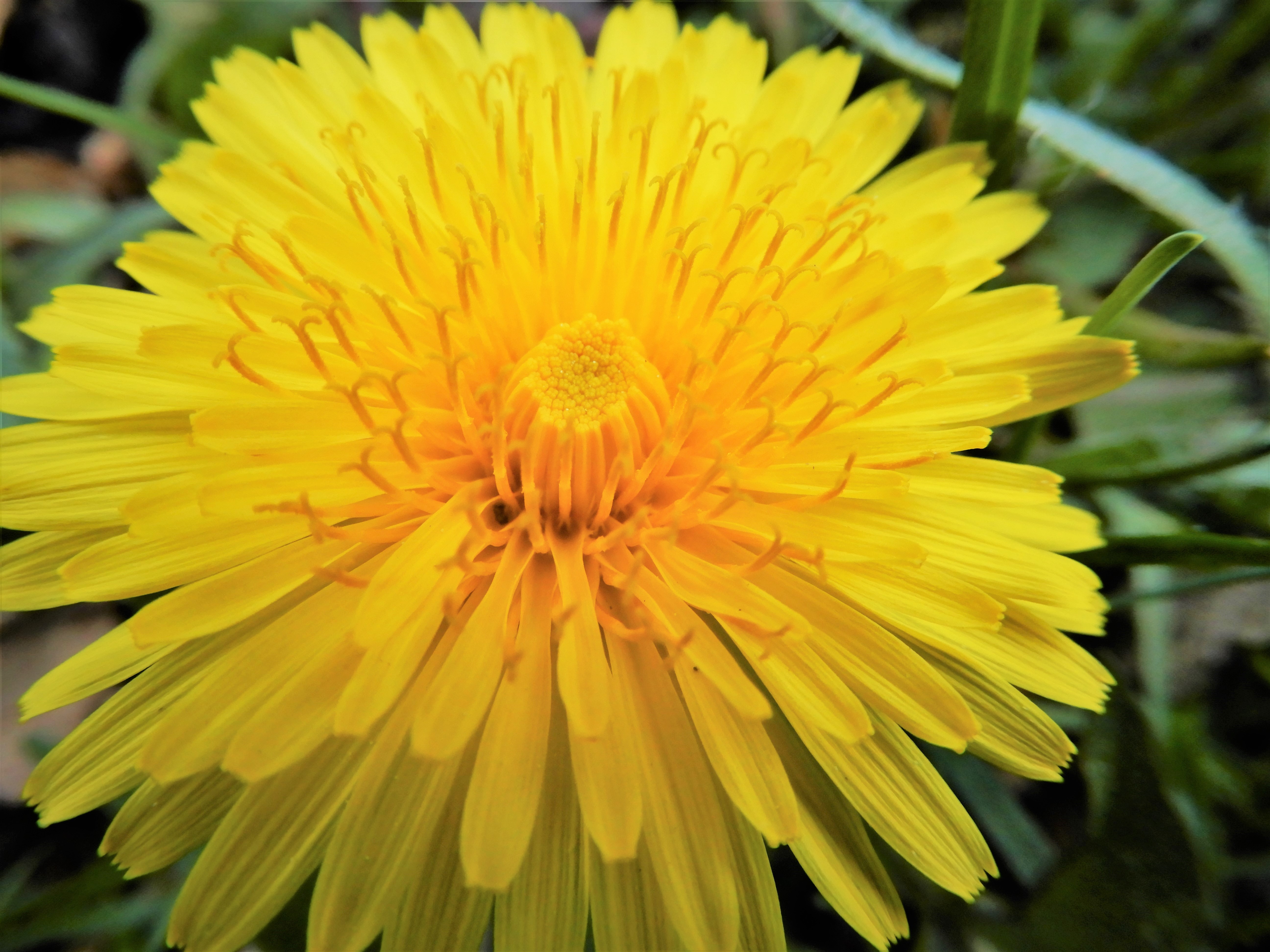 Een extreem gele paardenbloem gefotografeerd in macrostand