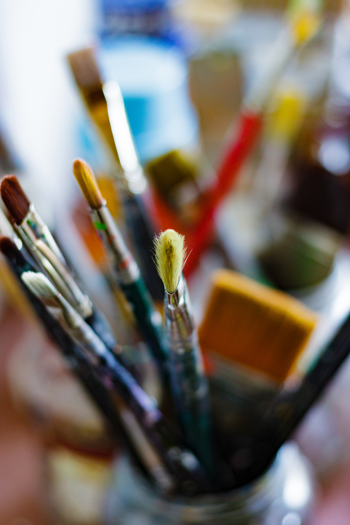 Paintbrushes in a jar