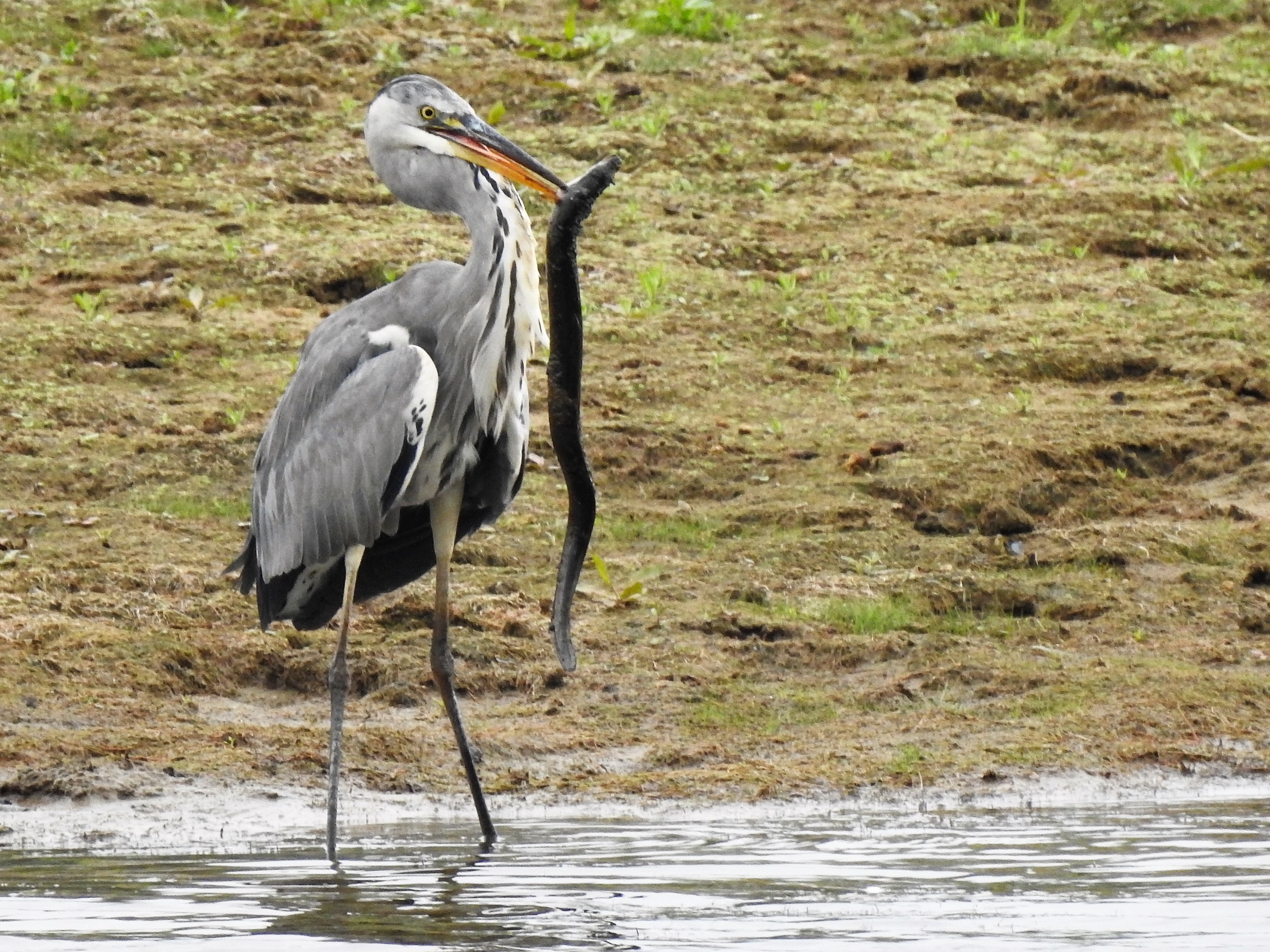 Fascinerend om te zien. Diverse malen wordt de paling gespietst aan de snavel van de reiger. Misschien en weer spiesen. Nooit eerder gezien. Uiteindelijk had de reiger er een heerlijk maaltje aan.