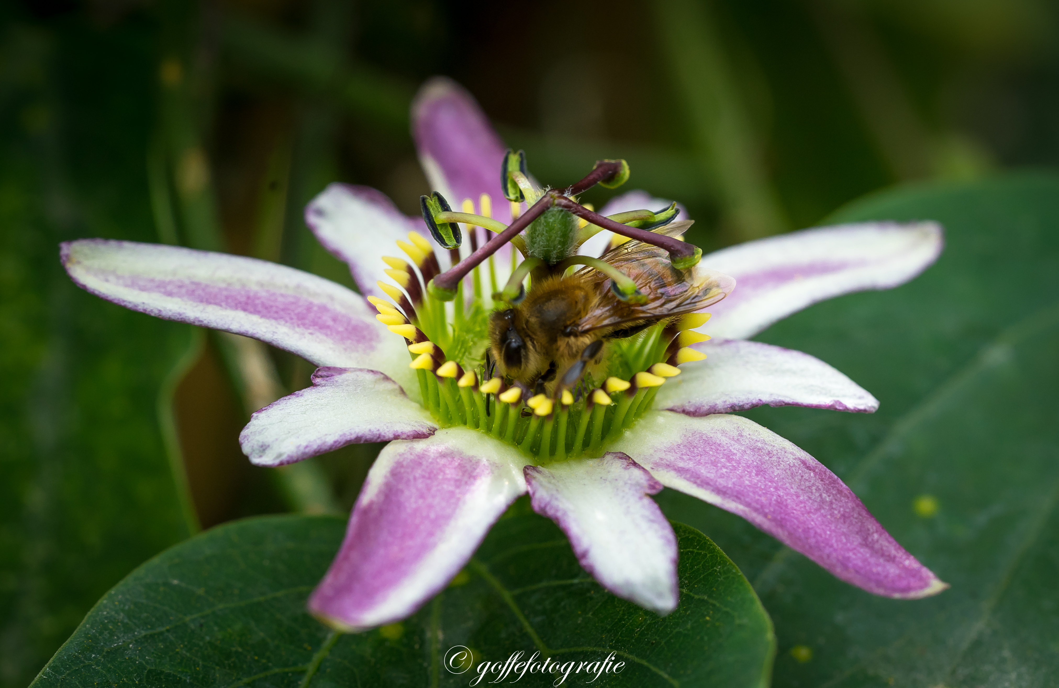 Passiebloem met een honingbij