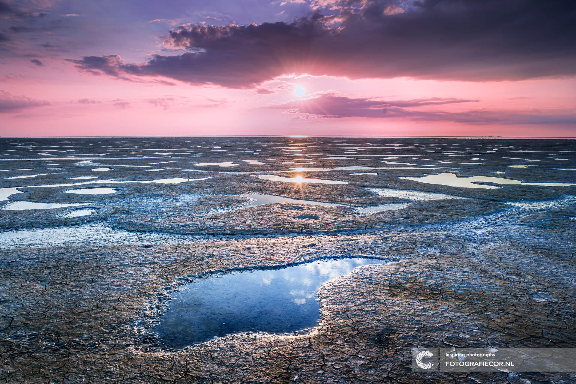 Het wad, een complex landschap van diepe geulen en ondiep water met zand- en slibbanken waarvan grote delen bij eb droog vallen. Een mooie zomeravond langs de Friese kust bij ondergaande zon met prachtige pastelkleuren en driegende wolken. 🌤🌬✨