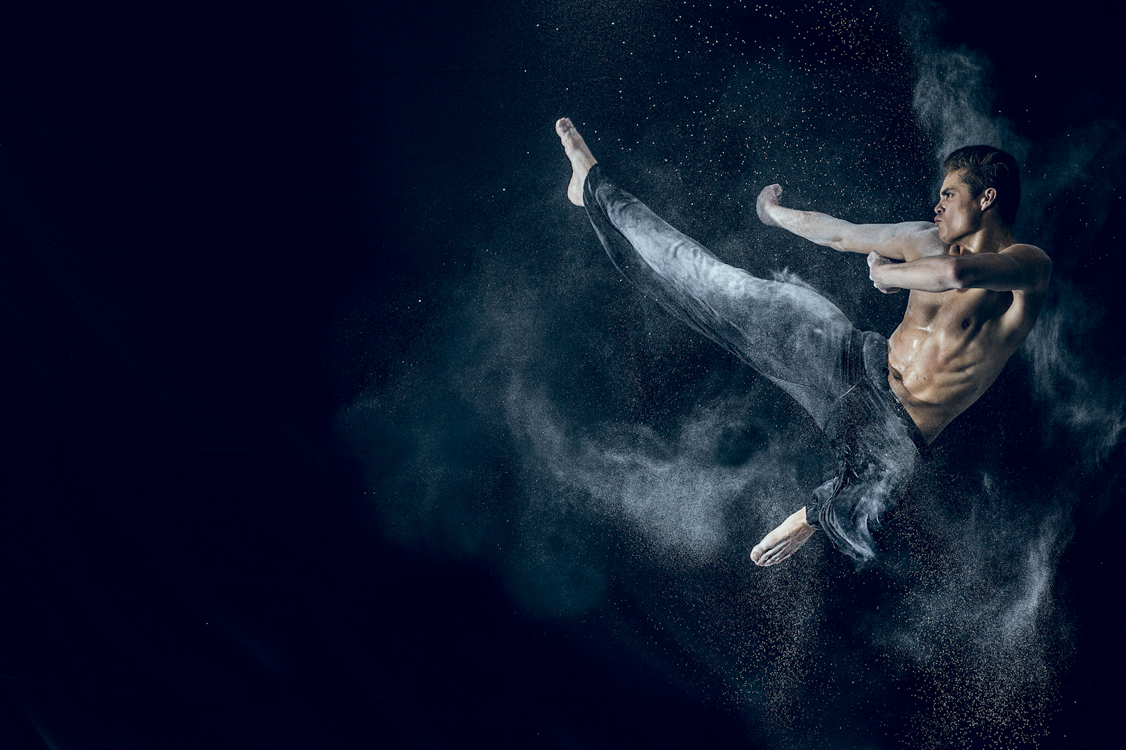Het witte in de foto is bakmeel hiermee kan ik de beweging en dynamiek van het model naar voren laten komen.