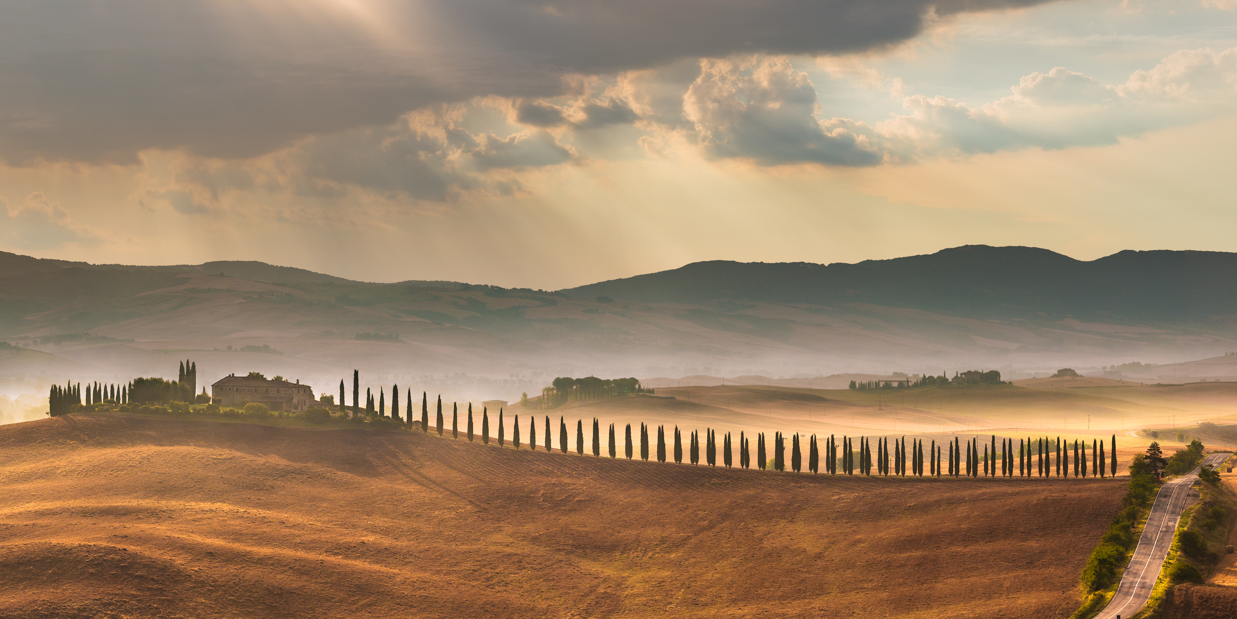 Podere Covili, vlakbij San Quirico. Voor deze foto ben ik om 5 uur opgestaan die ochtend en dat tijdens de zomervakantie. Ben je dan gek, of houd je gewoon van de natuur en fotografie.