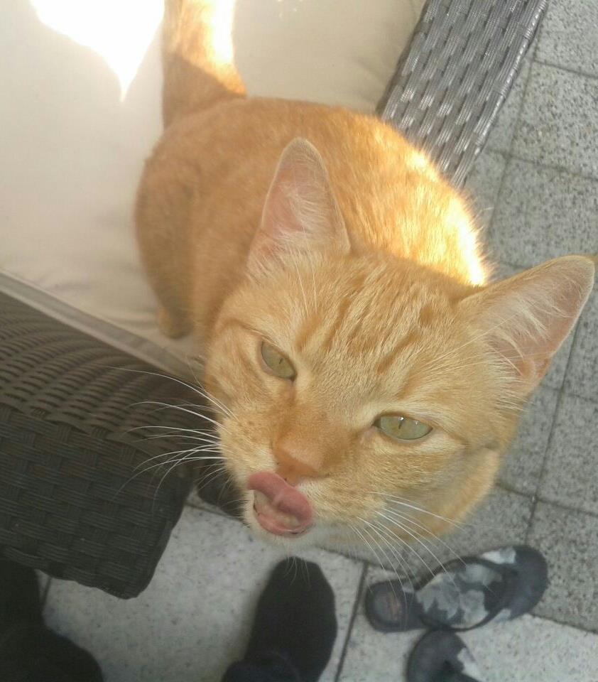 Poekie, steekt zijn tong uit