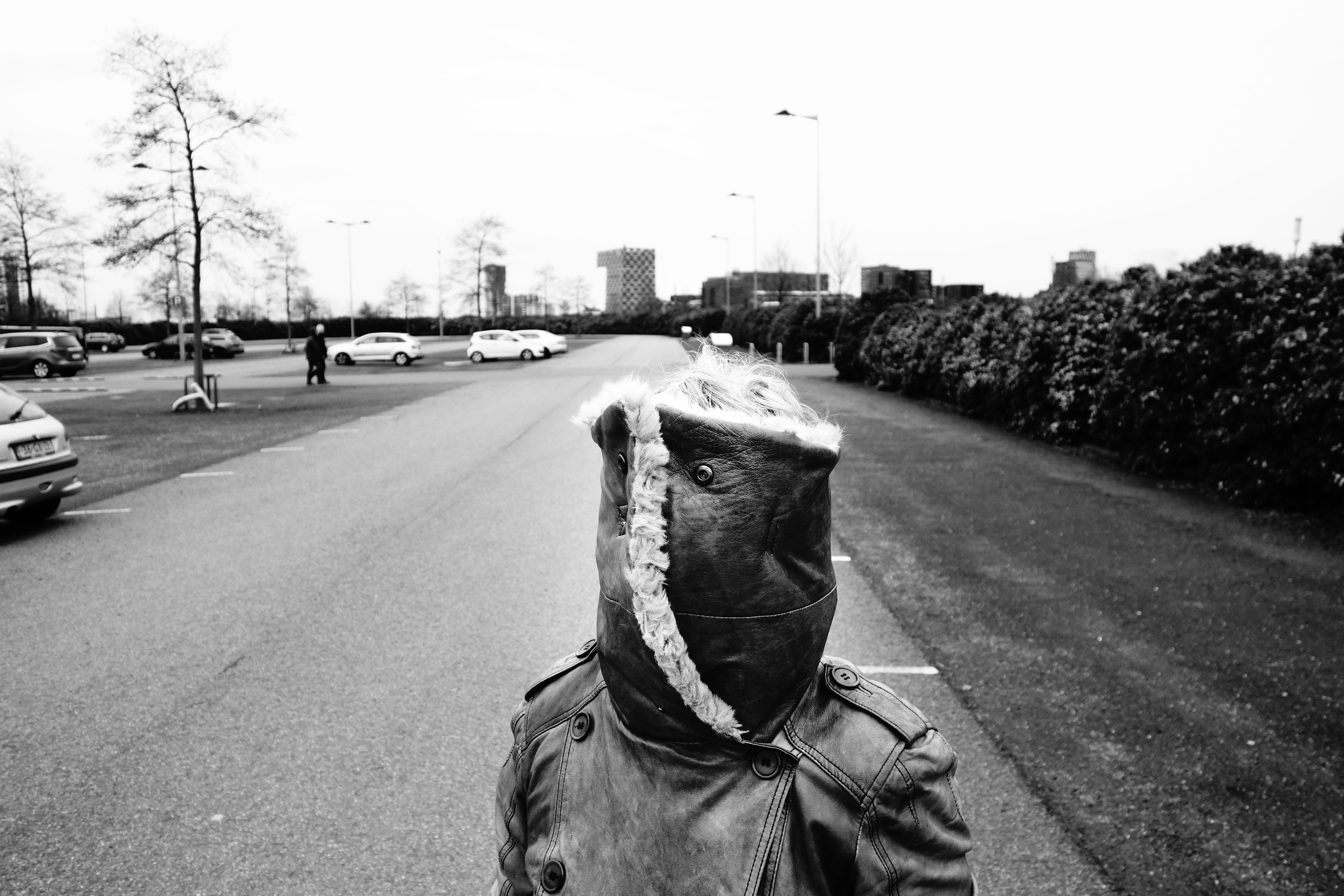 Grappig (en beetje eng) gebruik van de kraag van mijn moeder's winterjas voor een portret.