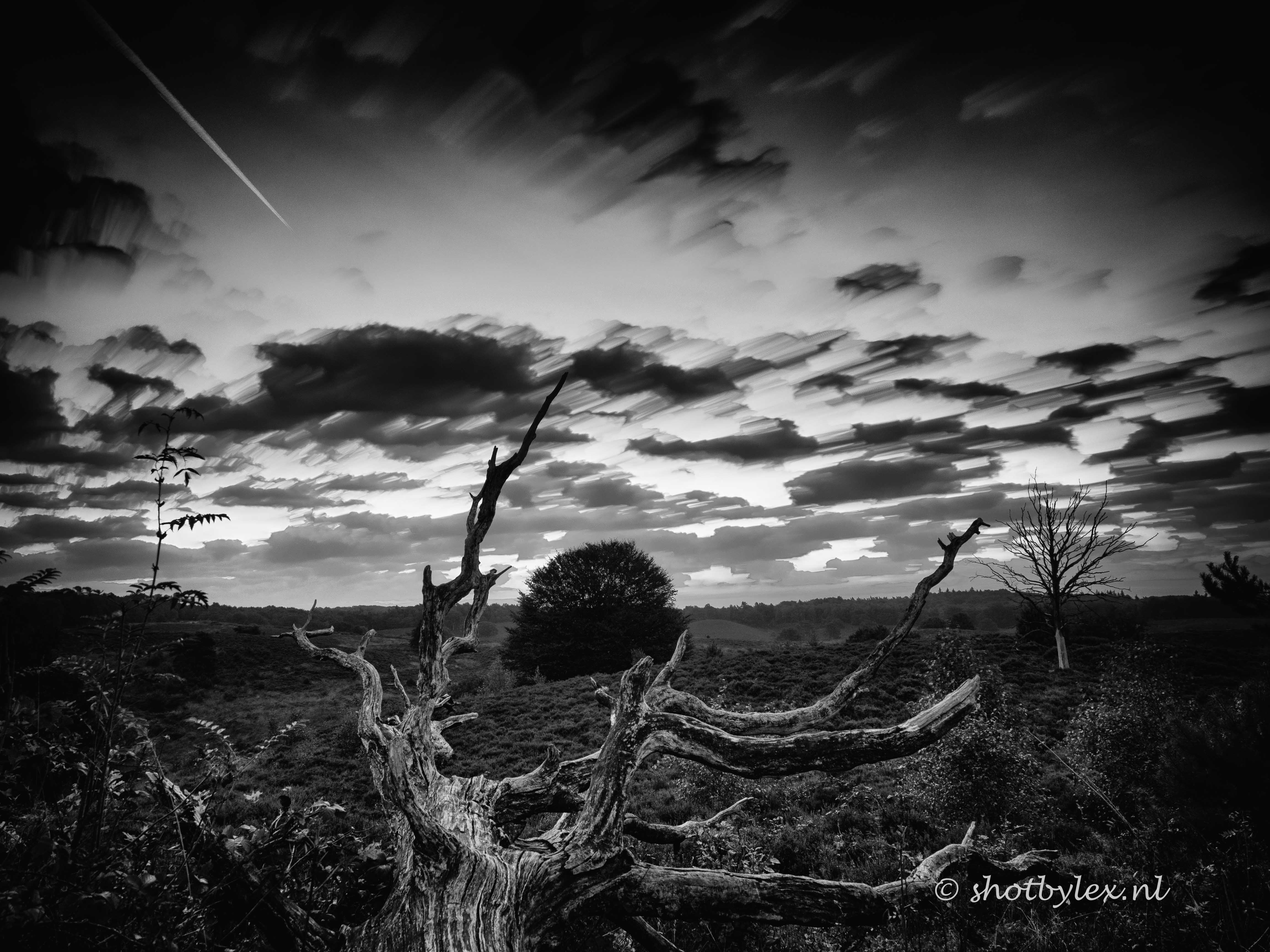 Dode boom in de vroege ochtend op de posbank