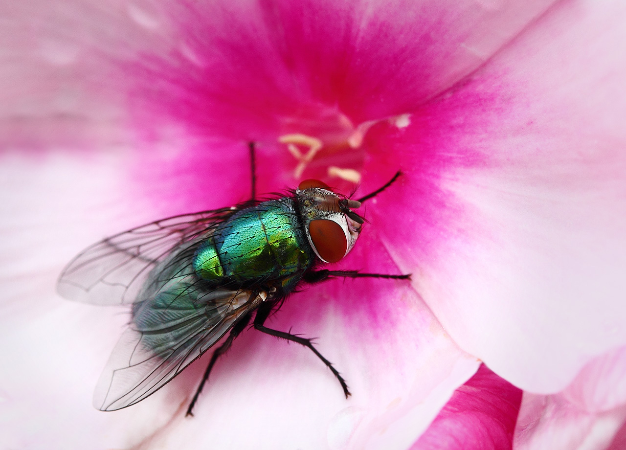 Vaak werken insecten voor geen meter mee als je ze wil fotograferen, maar deze vlieg was erg coöperatief door een tijdje stil te blijven zitten.