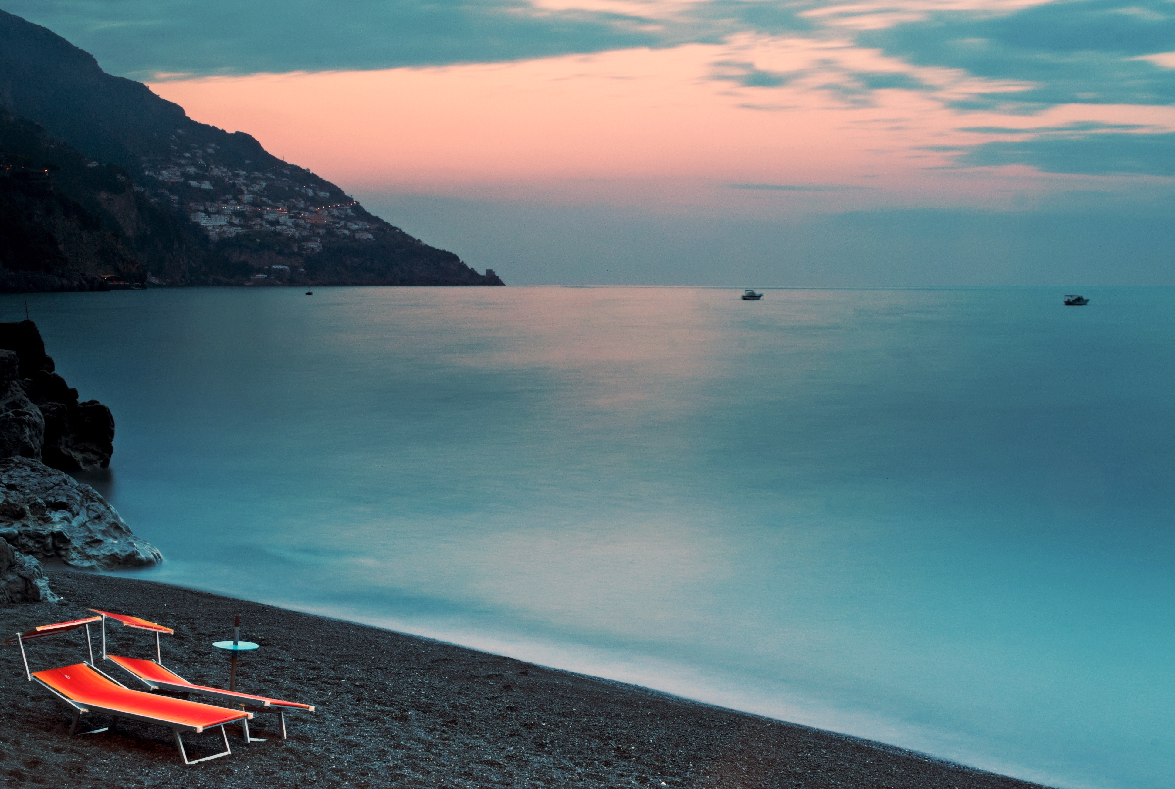Avondfoto op het strand van Positano (Italië)