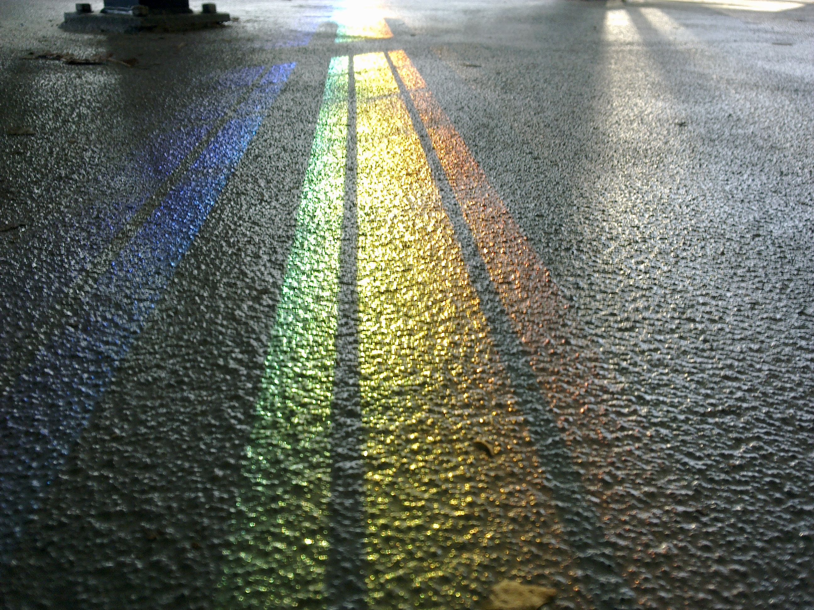 door de laagstaande zon brak het licht precies in een hoek van een kunststof windschild, het resultaat is een mooi gewaaierde prisma
