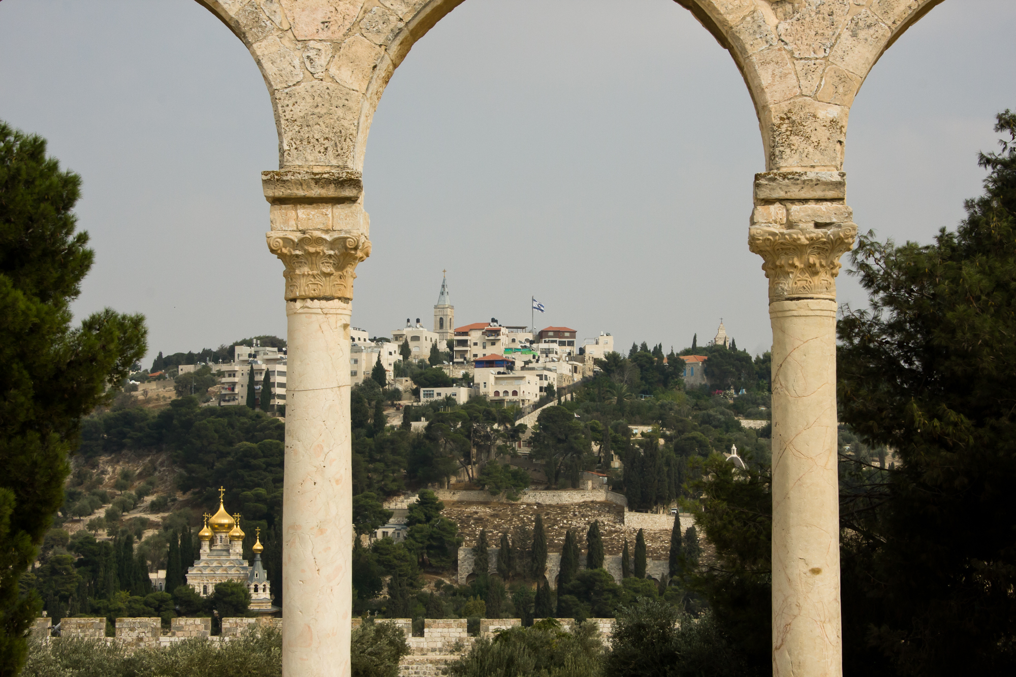 Zicht op de Olijfberg vanaf het plein bij de Rotskoepel.