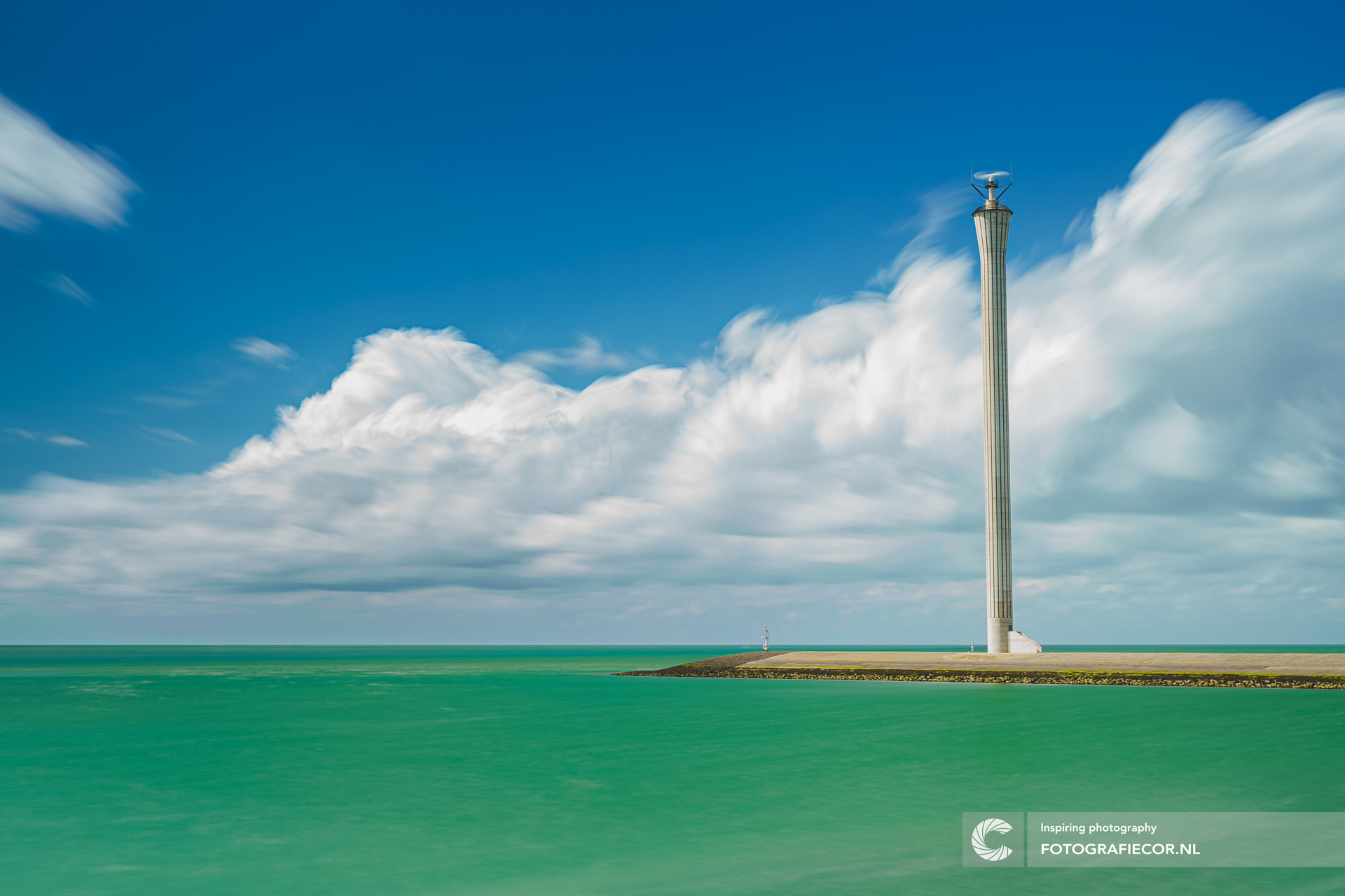 Een markant bouwwerk op het eiland Neeltje Jans aan de Oosterscheldekering van Zeeland. Fier rechtop, gestroomlijnd tegen de wind en minimalistisch dominant aanwezig in het landschap van de Zeeuwse wateren staat deze radartoren met zijn slanke silhouet. De uitdaging is deze foto zit hem in zijn compositie maar ook in de juiste belichting en de richting van het zonlicht waardoor je minimale schaduwen krijgt tegen een prachtige Hollandse lucht met blauw en stapelwolken. Als je gebruikt maakt van een filter voor het creëren van een langere sluitertijd beheers je meer de dynamiek van de weersinvloeden. Als je dan het geluk hebt dat de wind in richting aan het veranderen is op het moment dat je aan het afdrukken bent krijg je het schitterende effect van wolken die alle richtingen lijken op de waaien.