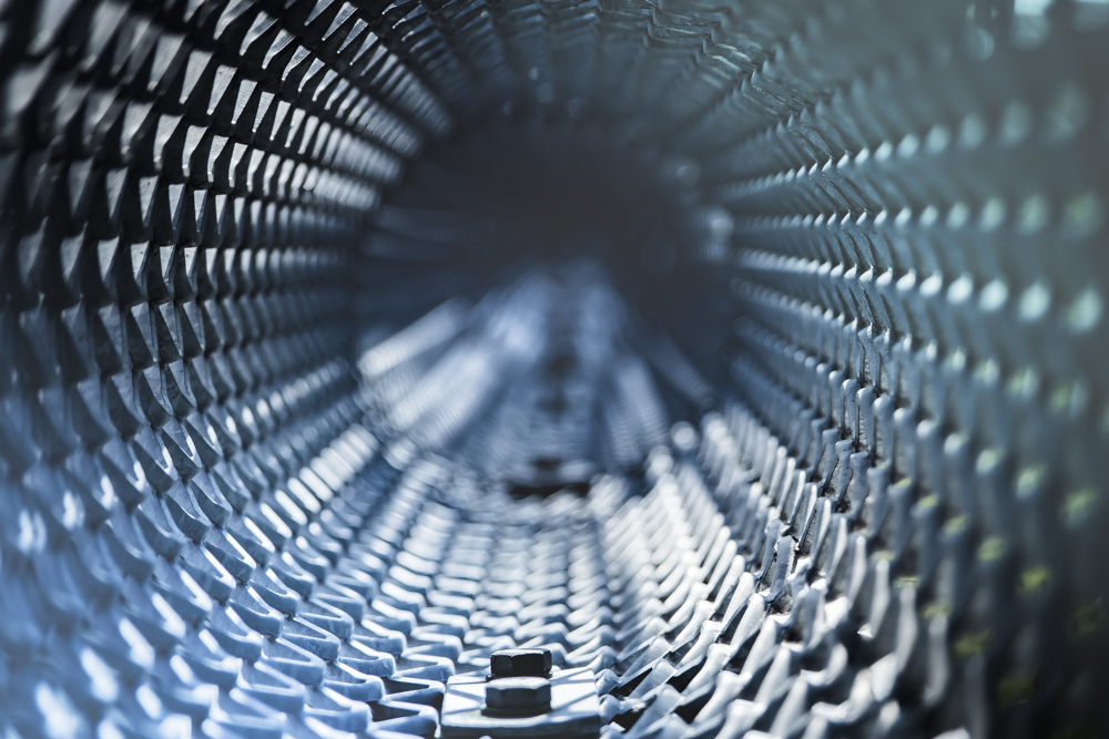 binnenzijde van een buis. het gaas op de kopse zijde heb ik weg kunnen fotograferen.