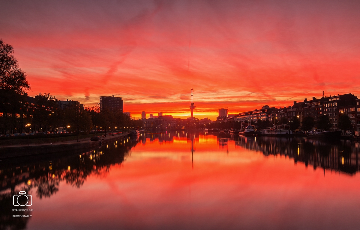Red sunrise in Rotterdam