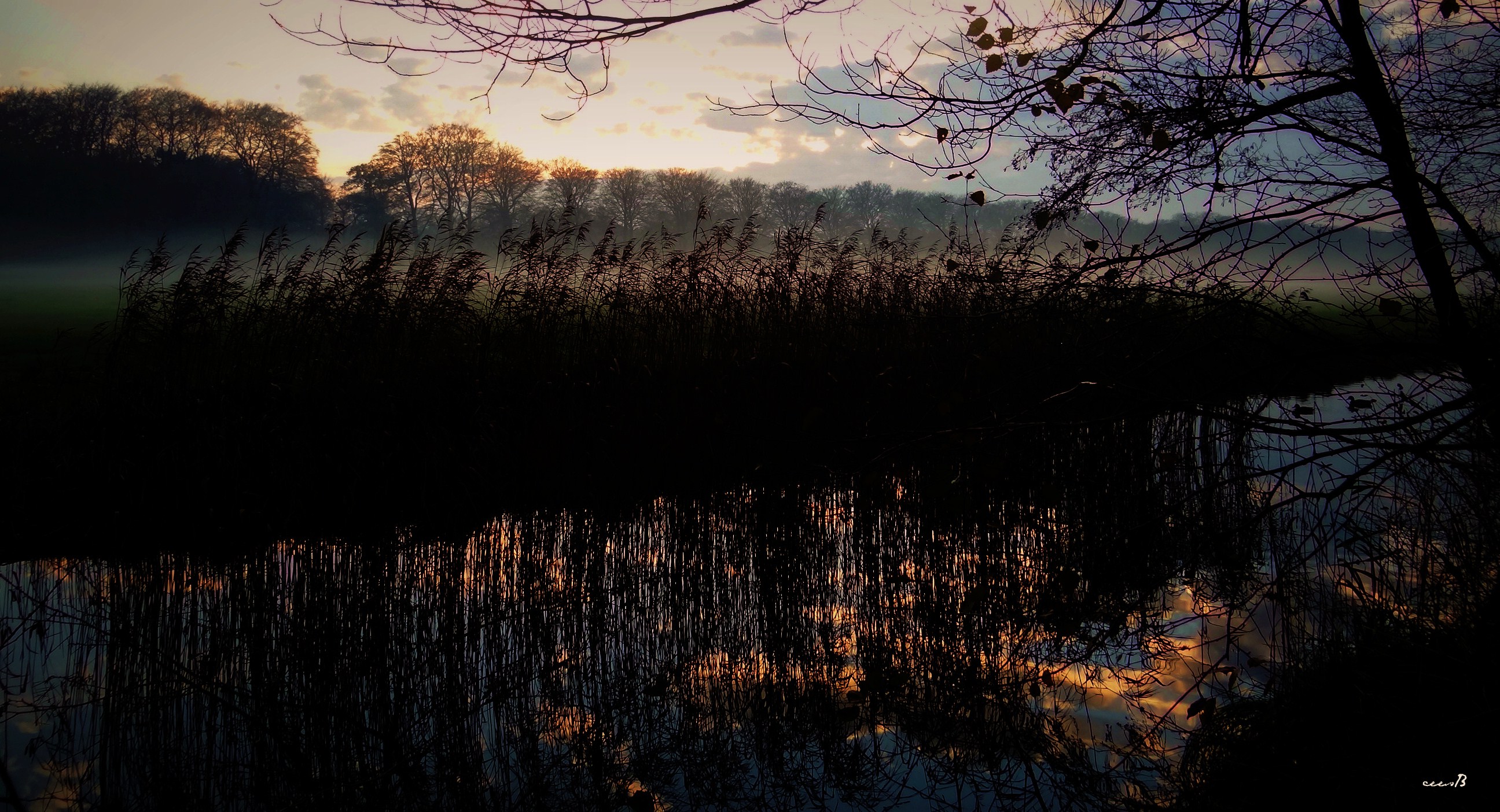 De zon daalde laat in de namiddag neer op de weideland tussen Spanderswoud en Landgoed Bantam