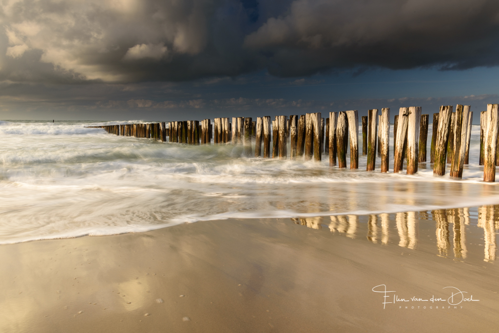 Ik vind de zee altijd een heerlijke plek om je hoofd leeg te maken en weer nieuwe energie op te doen. Het contrast tussen de rustige reflectie en het wildere water en lucht vond ik hier mooi om te zien.