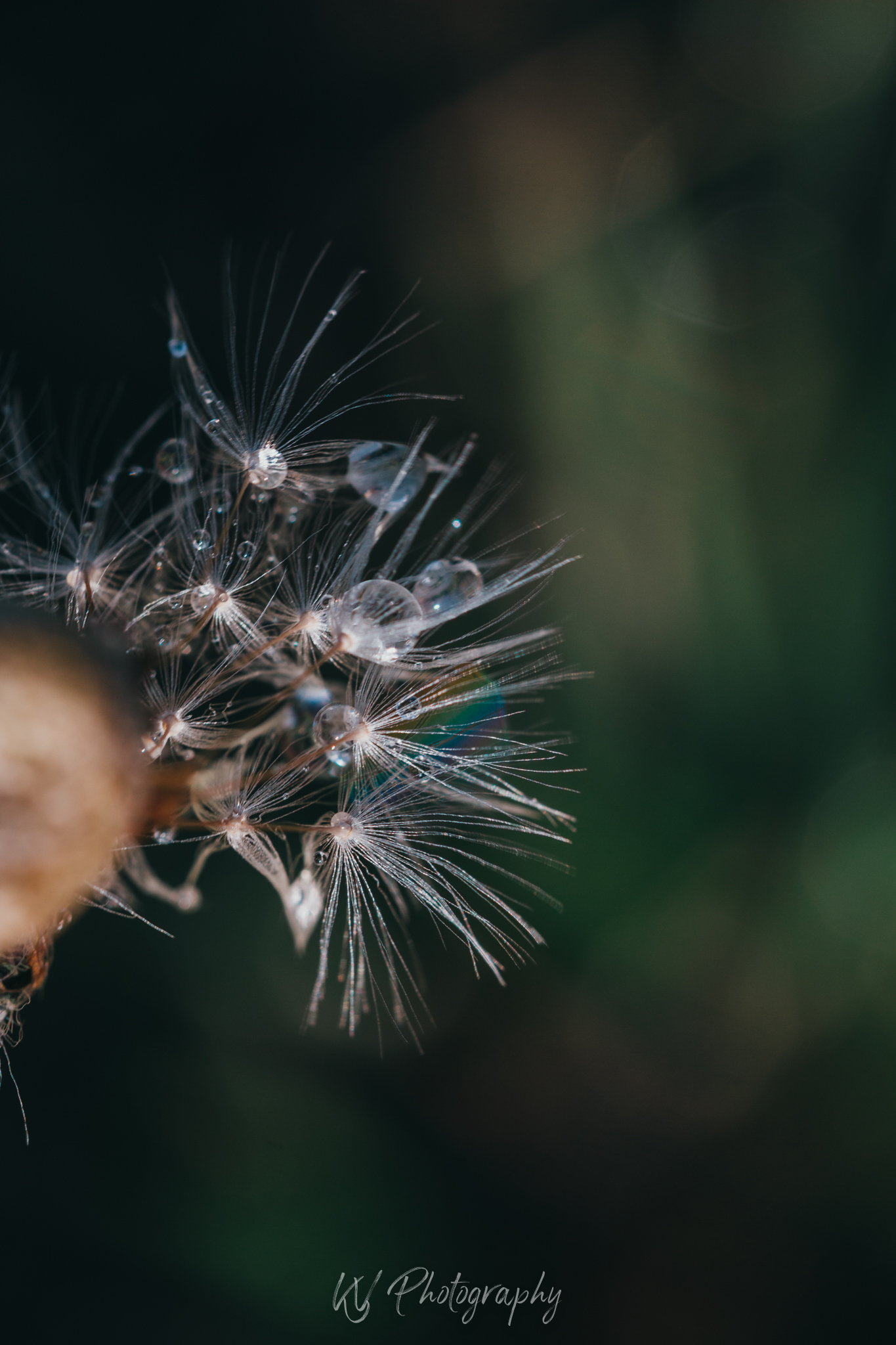 Water op een paardenbloem met het zonnetje er op