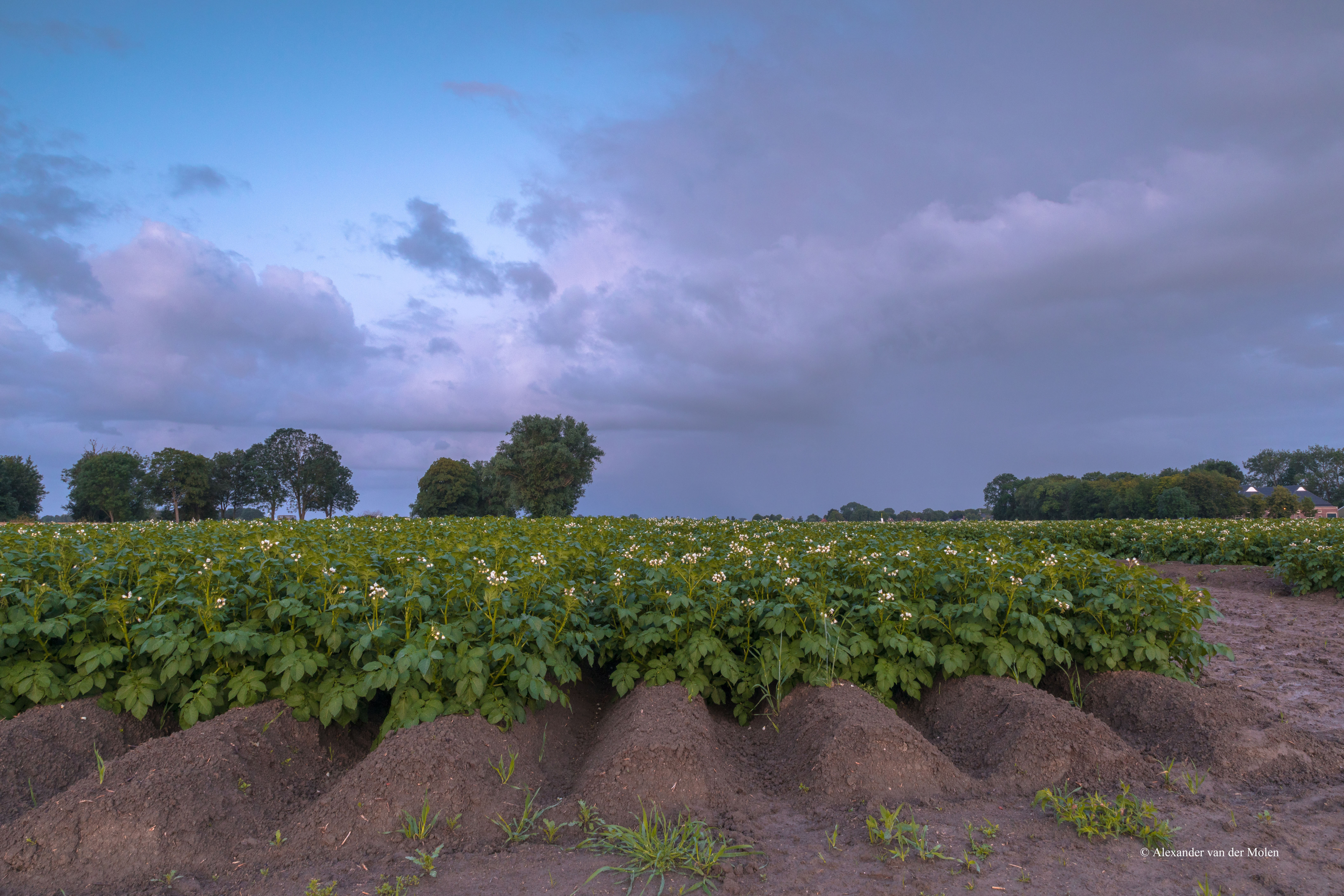 Regenwolken boven aardappelveld
