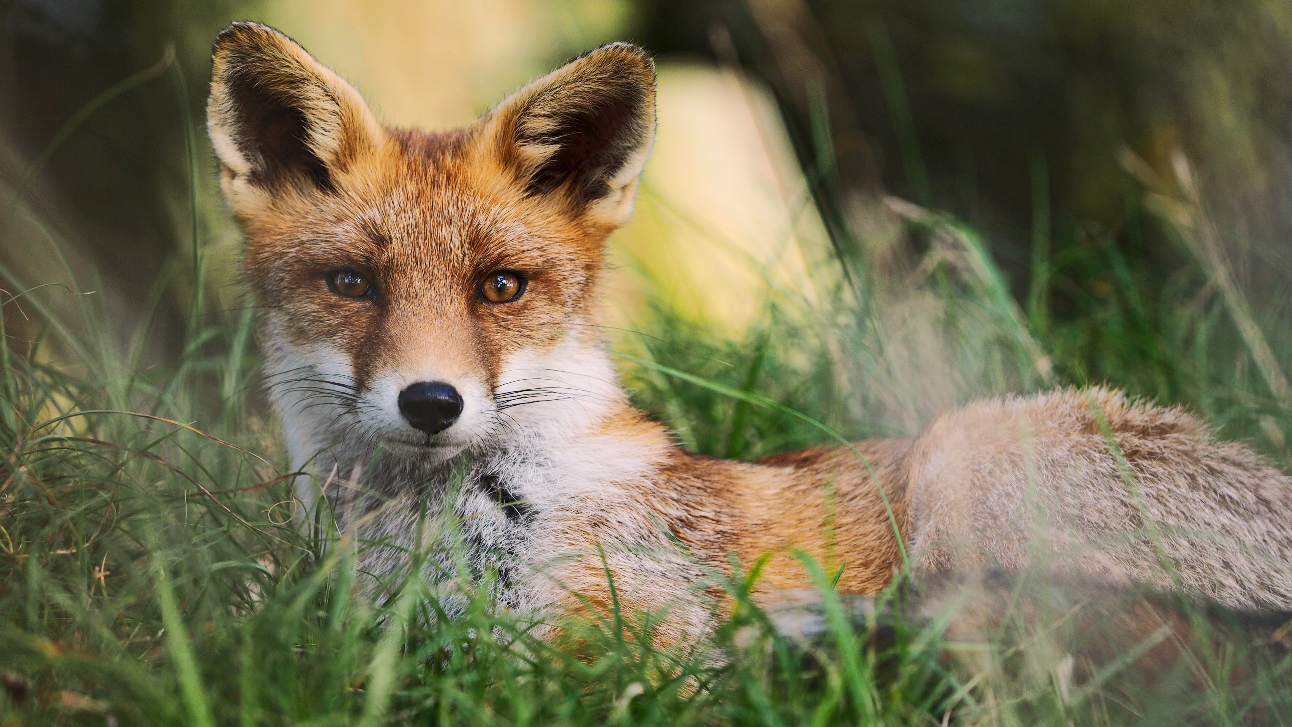 rustend vosje in het gras