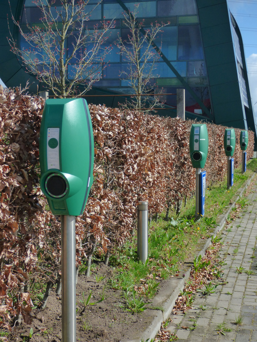 Een rij laadpalen die volgens mij prima past in de wedstijd met het thema herhaling