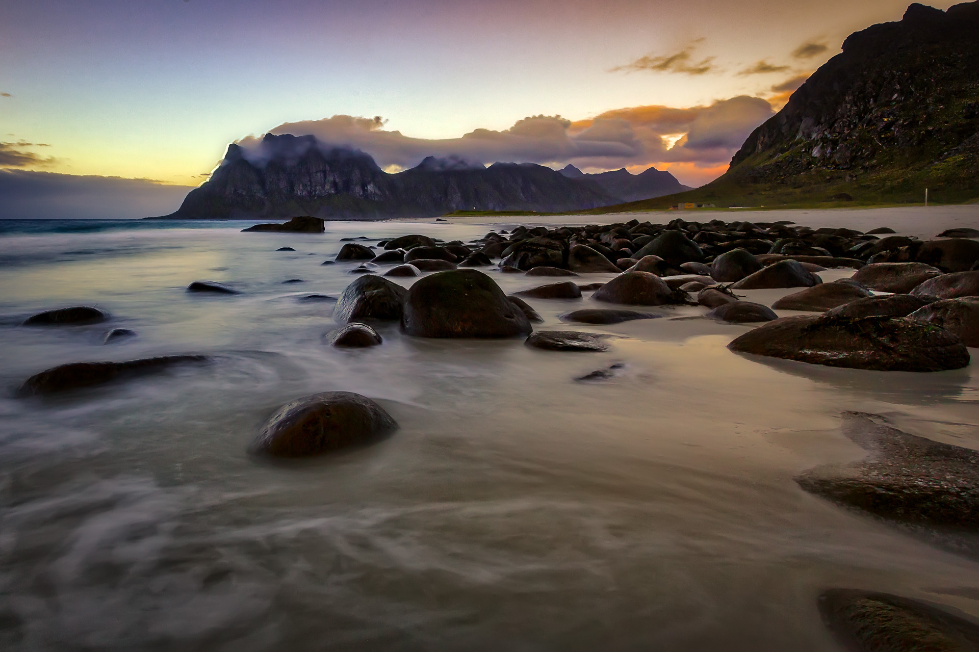 Heerlijke zonsondergang in Uttakleiv, Lofoten.