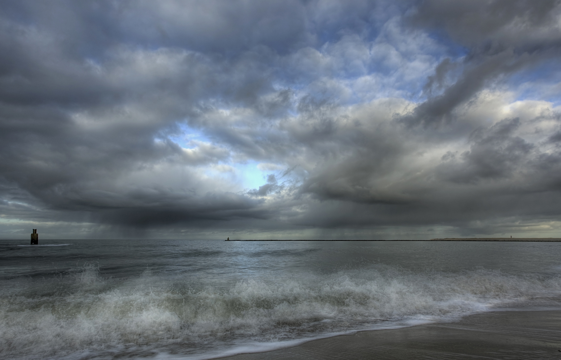 een opname van een bijzonder moment in de atmosfeer, zowel buien als opklaringen op hetzelfde moment.