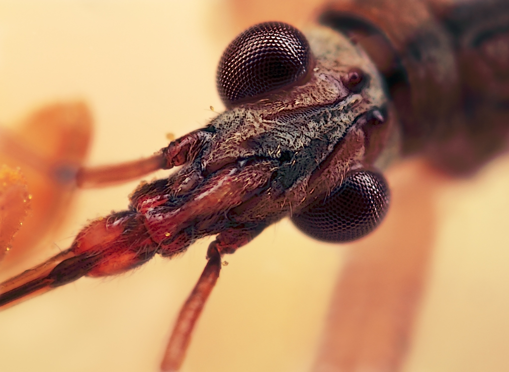Portret kleine roofwants, gemaakt met vergrotingsfactor 10 en f/7.1.