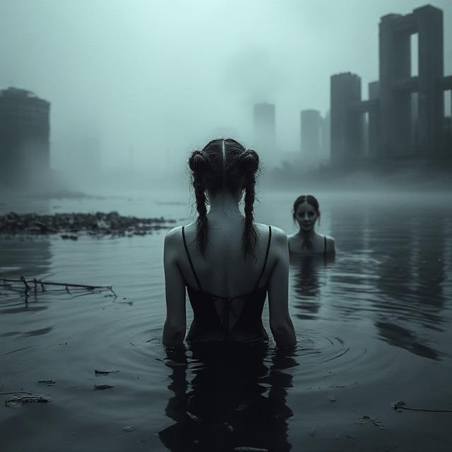 now two innocent girls swim in a place where once was a park