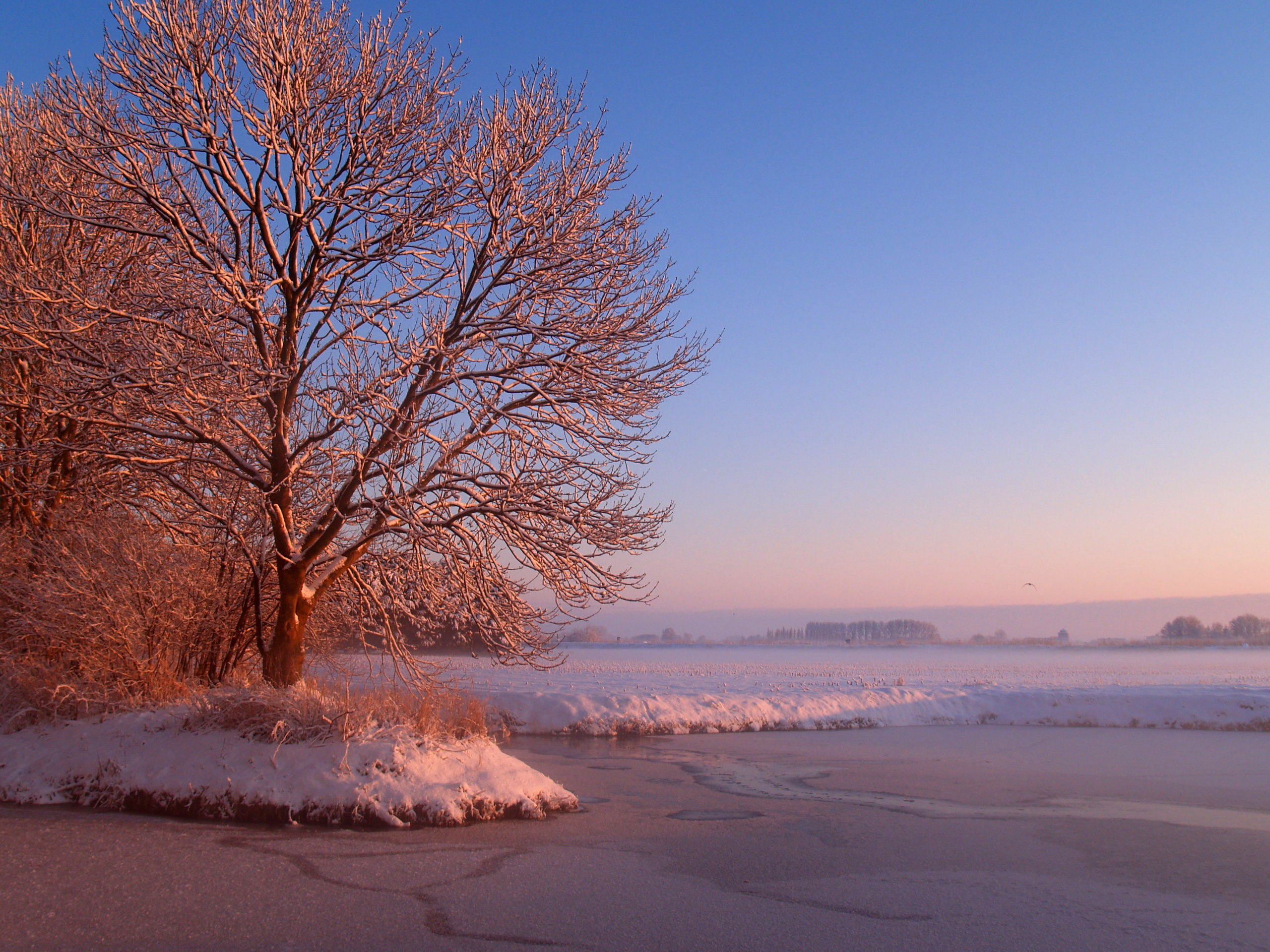zachte warme kleuren op een koude stralende wintermorgen