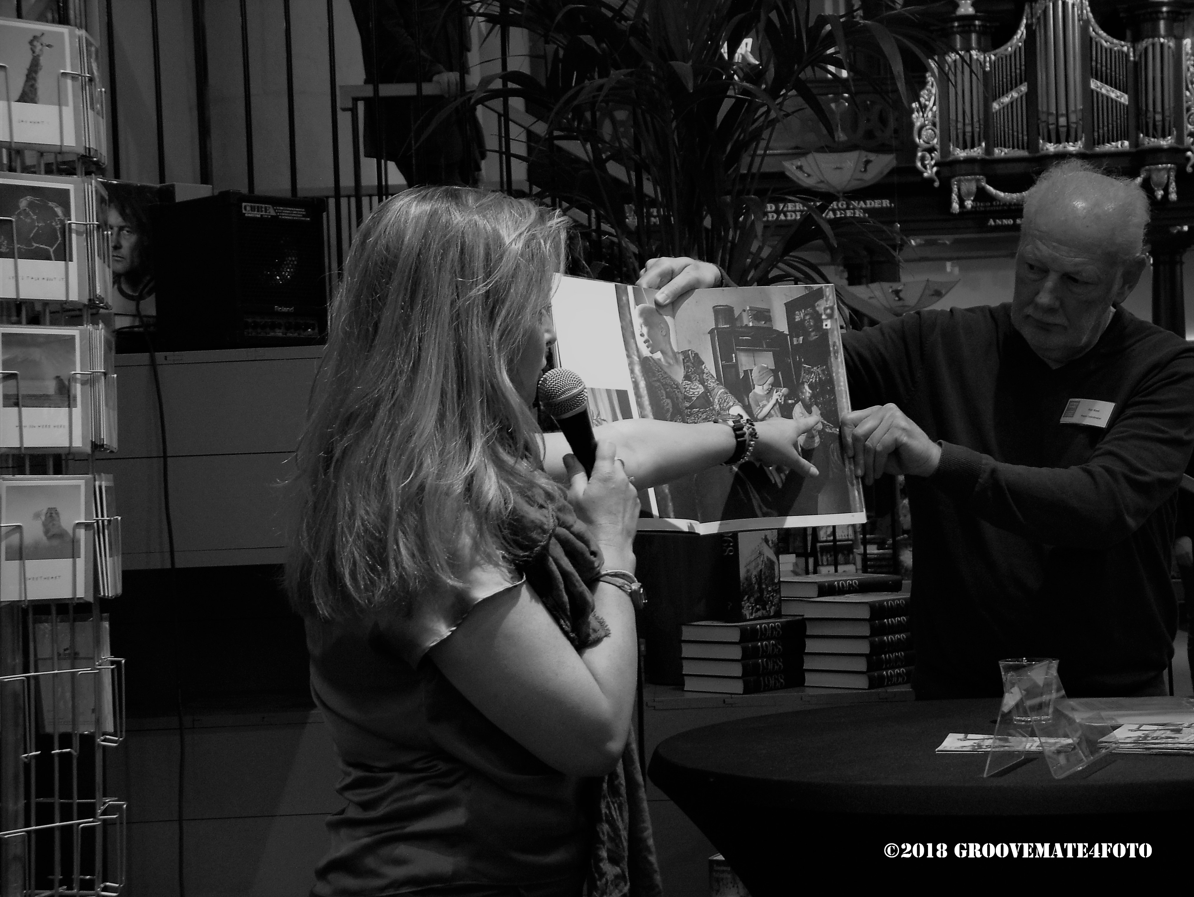 Fotografe Sacha de Boer, signeersessie bij boekhandel Waanders in de Broeren Zwolle 28 april 2018 + buitenexpositie LEVEN IN DE SCHADUW