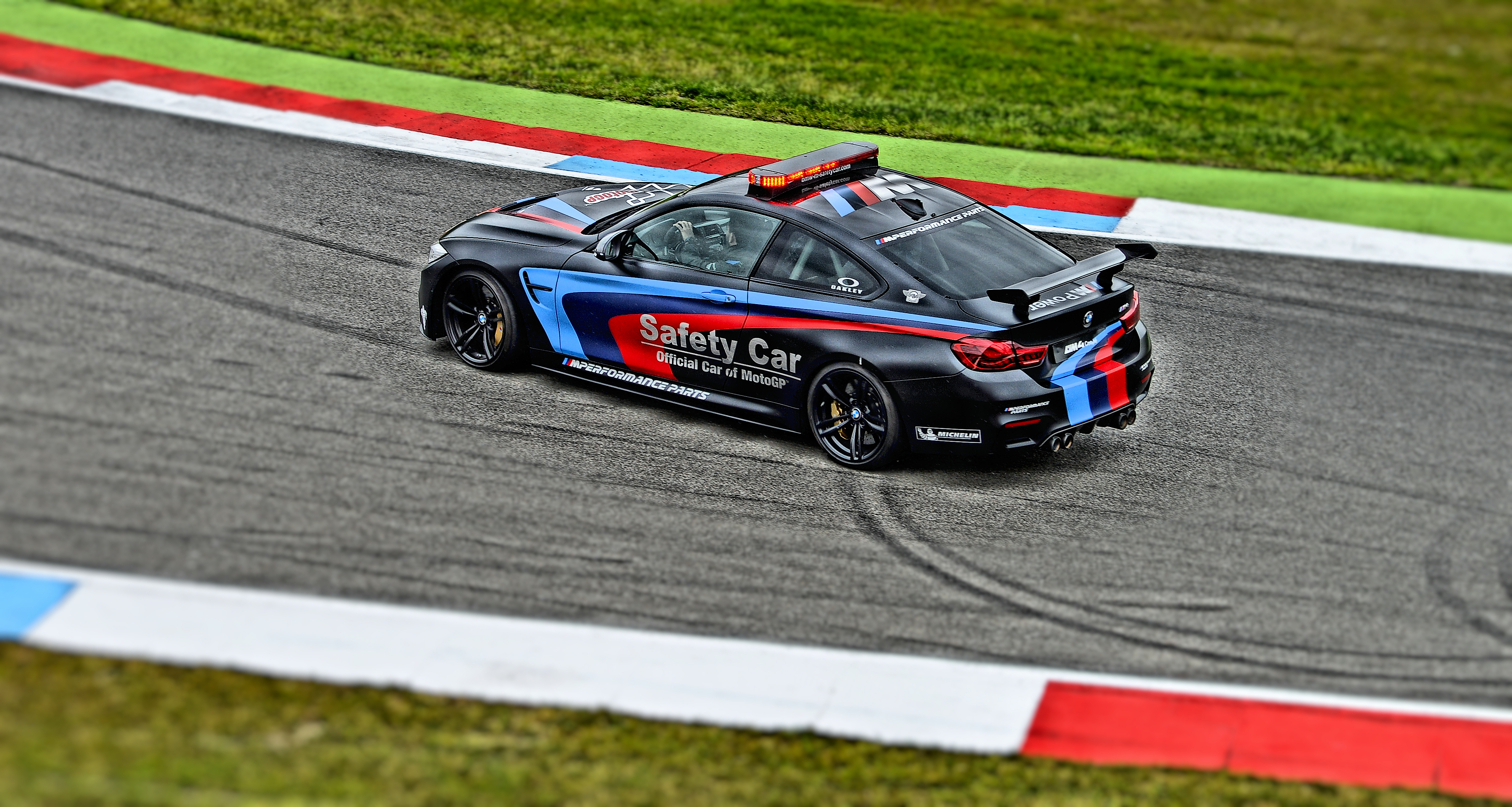De mensen in deze mooie BMW safety car gaven een mooie show tussen de races door. Tijdens de TT in Assen.