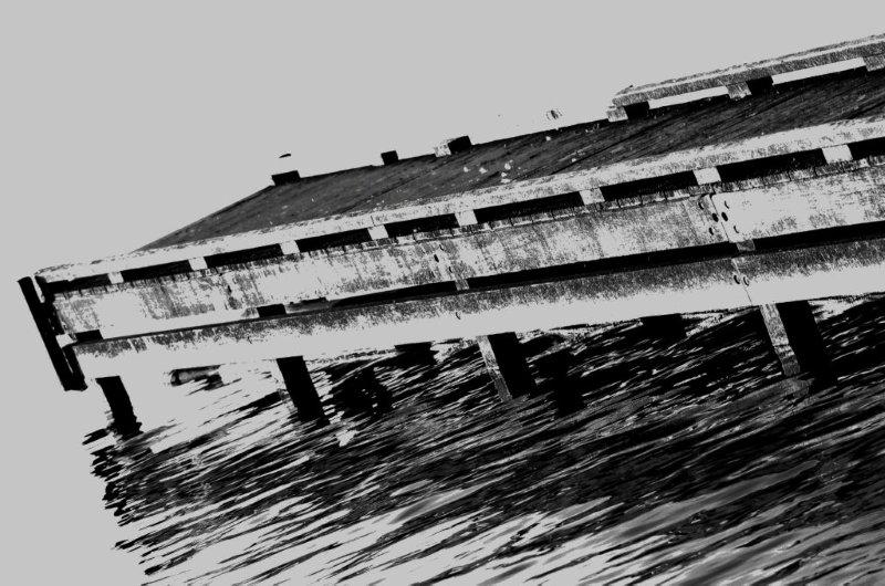 De steiger aan het Veluwemeer schuin op de foto gezet...de zwart wit schakeringen geven een bijzonder licht