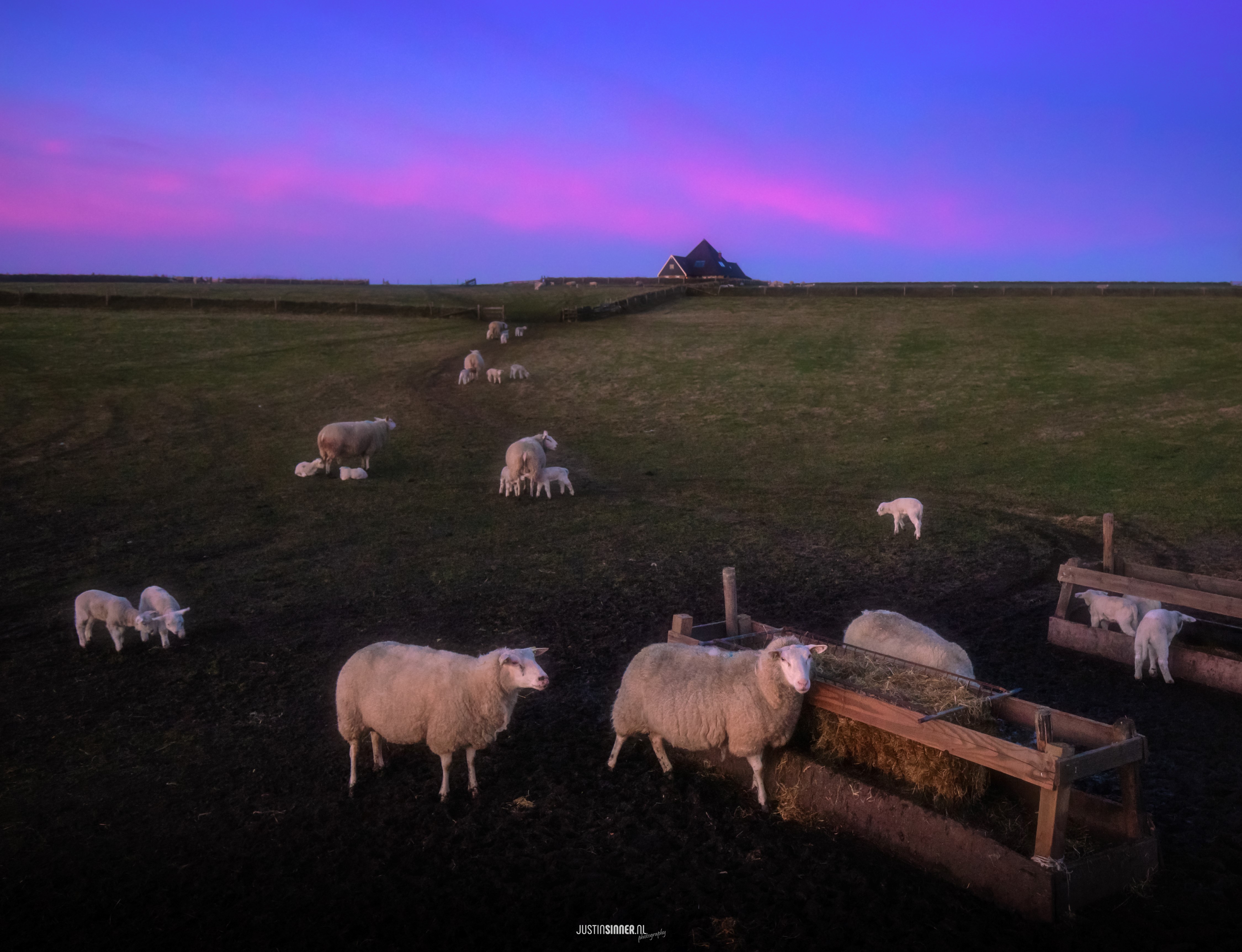 Foto van afgelopen zondag. Het Hogeberg gebied met de schapen en lammetjes van Schapenbedrijf De Waddel. 20 minuten na zonsondergang kleurde de lucht gedeeltelijk roze. #Texel #lammetjes #spring #lente #waddeneiland #justinsinner #photography