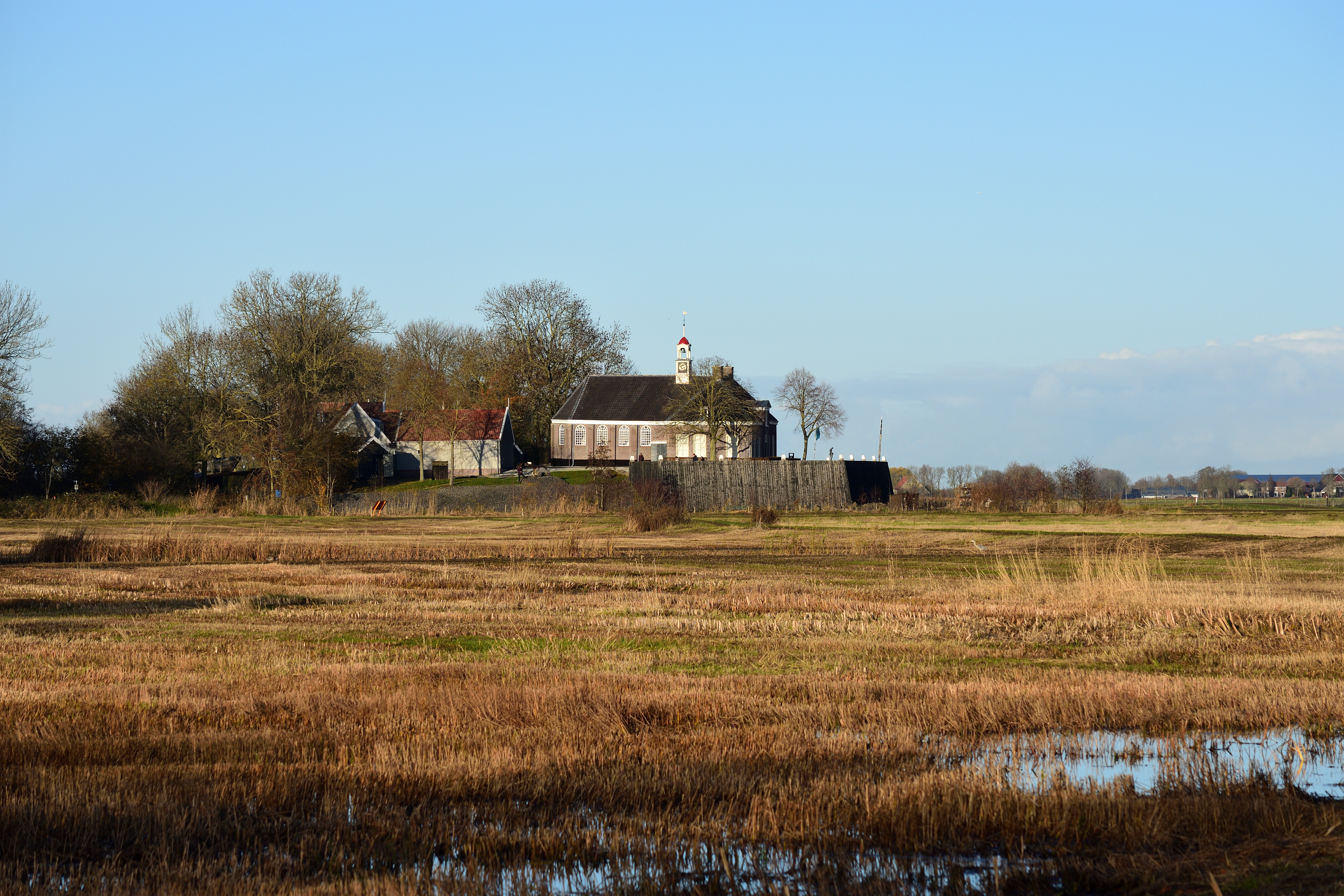 Deze foto heb ik net naast het voormalige eiland Schokland. De gebouwen op de foto is het midden van Schokland.