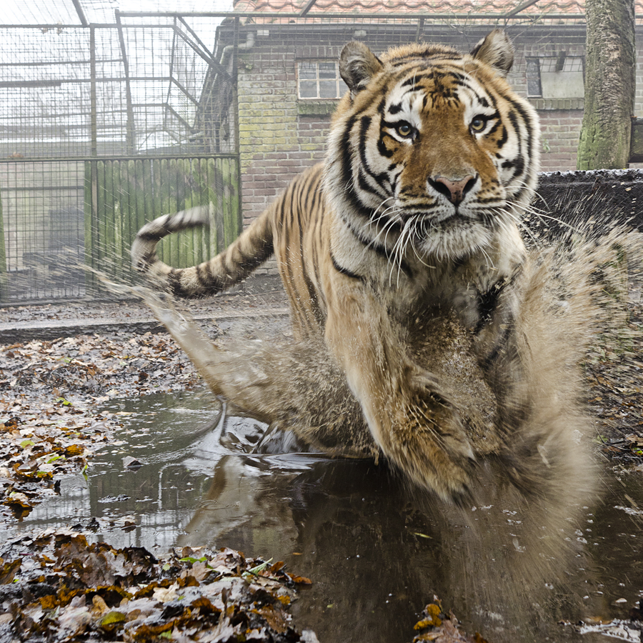 even een 'schrikmoment' tijdens het fotograferen van een tijger. Ik stuiterde een eind omhoog toen die op mij af kwam. Wel een leuk moment te pakken.
