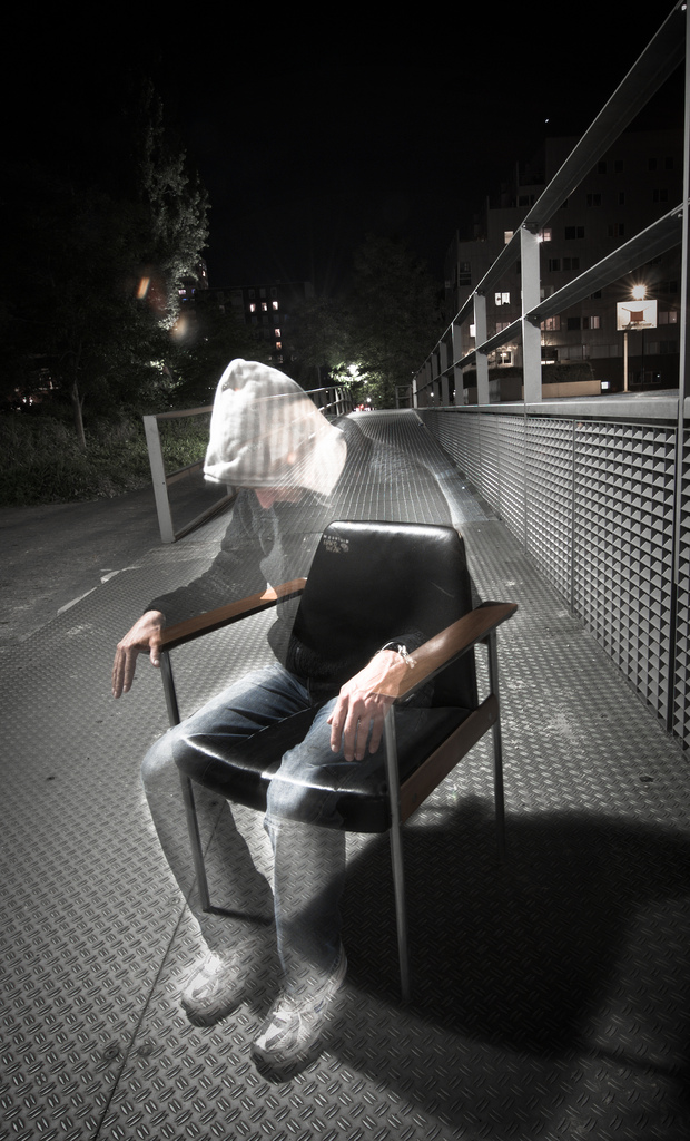 Camera op statief, dertig sec de sluiter open, vijftien sec zitten en hup weer weg.....erna een kleine bewerking met lightroom.