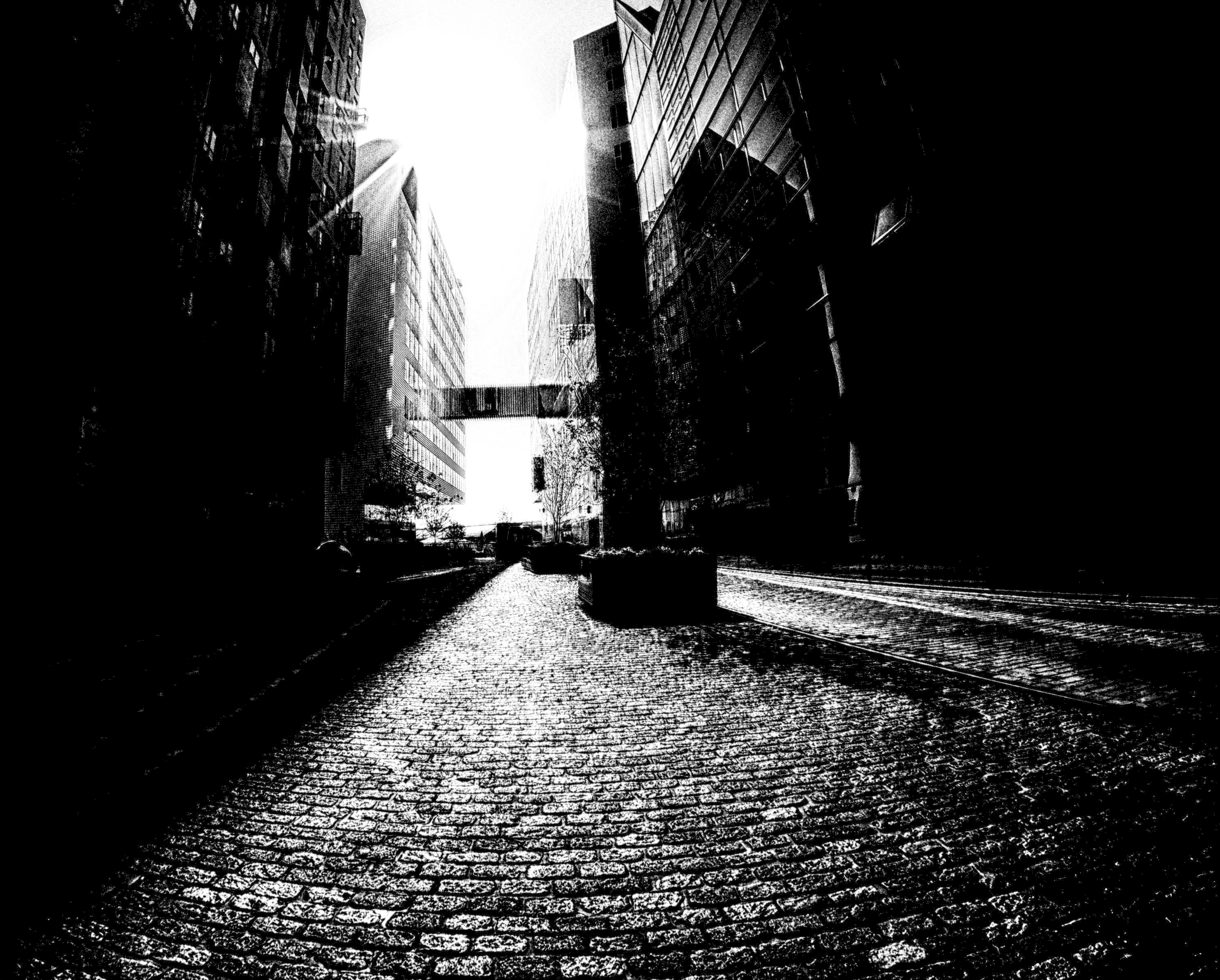 September light penetrates two buildings to caress the paving stones