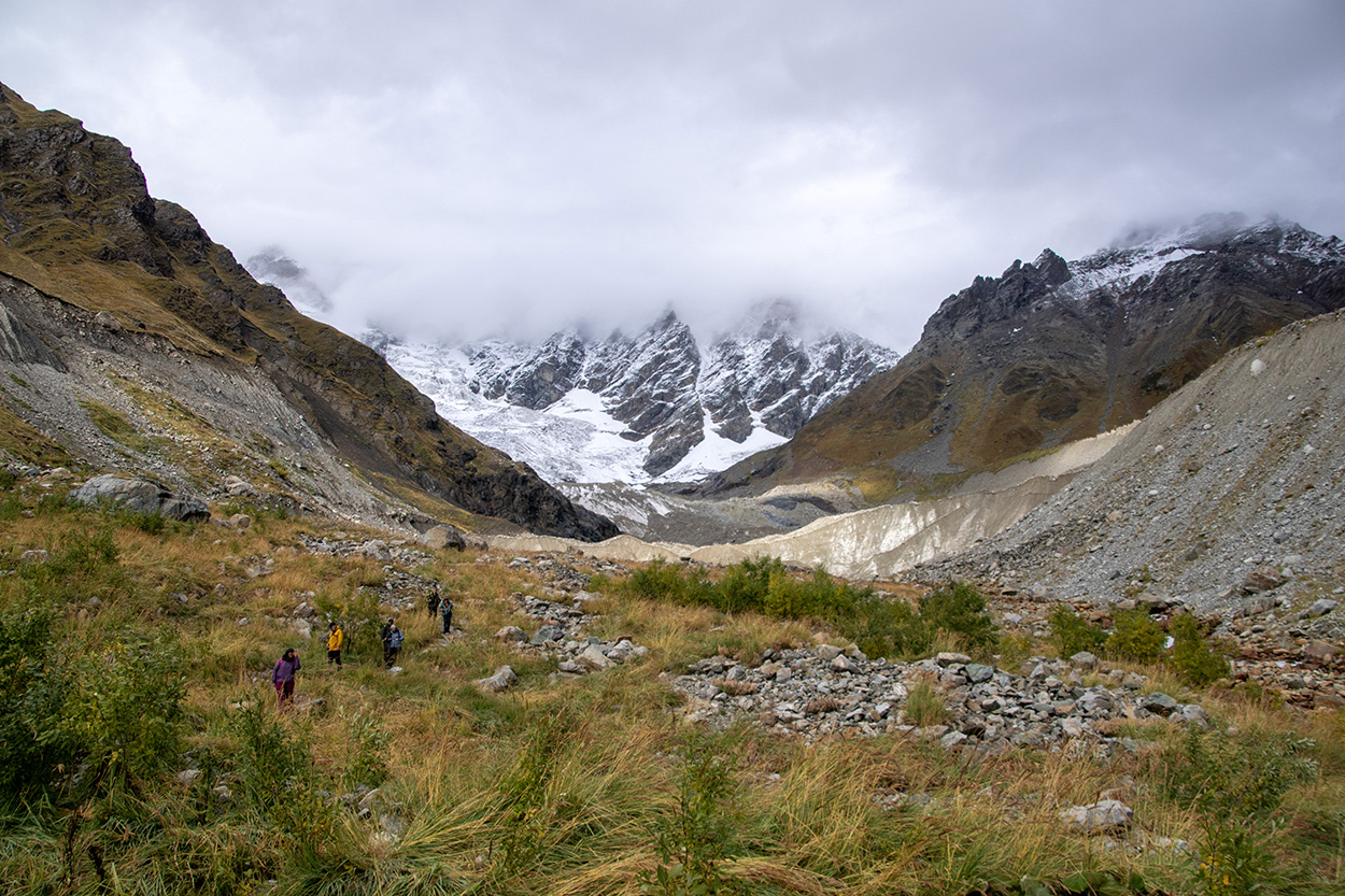 op de terugweg van de Shkhara gletsjer Georgië