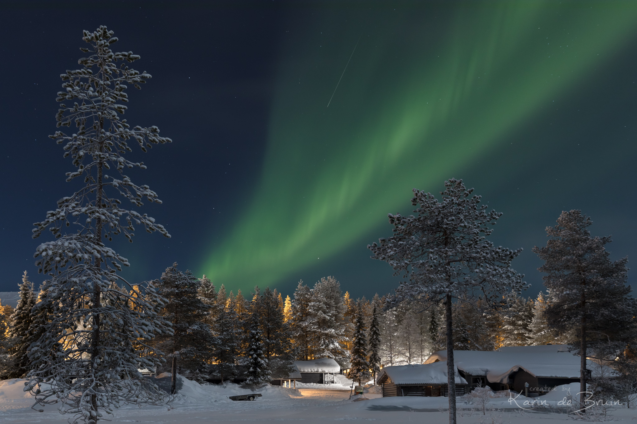 Als je een vallende ster ziet, mag je een wens doen. Maar als deze ster valt in een dansende Aurora heb je geen wensen meer!