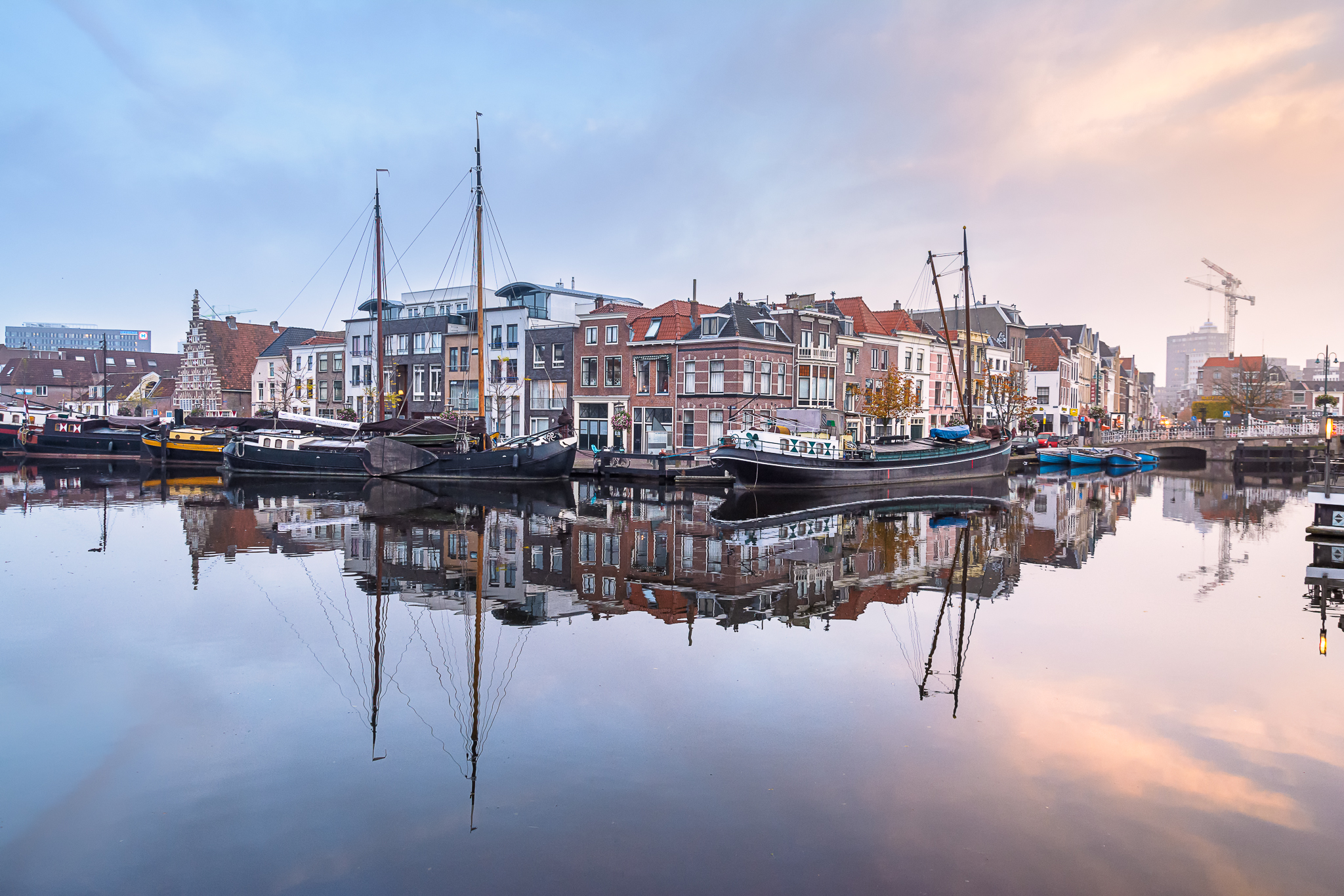 The awakening of the City of Leiden with a morning view over the beautiful Galgewater.