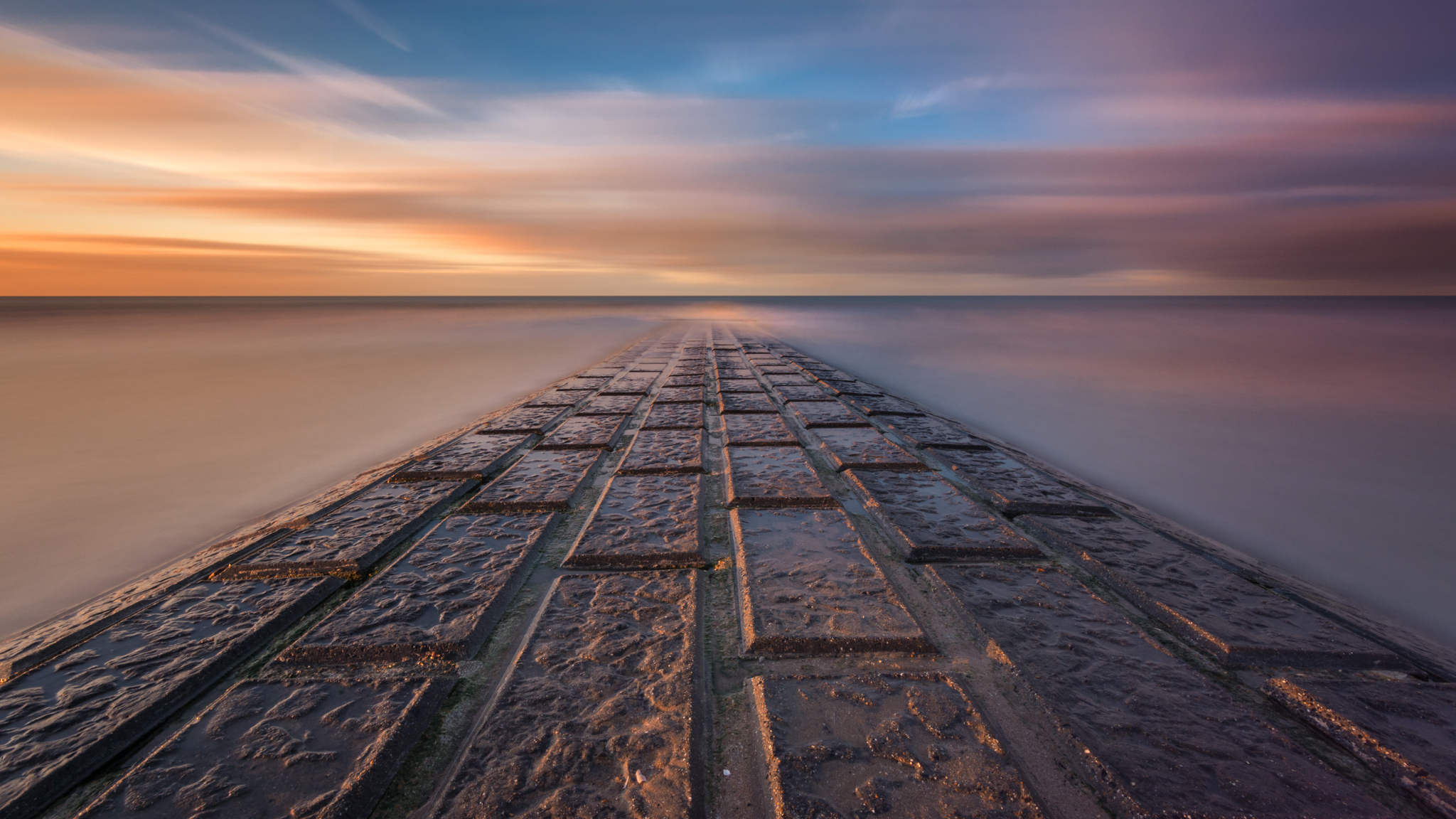 Foto genomen op een golfbreker aan de Belgische kust.