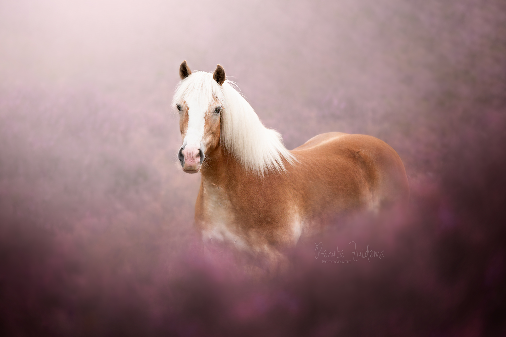 Haflinger Sita tussen de heidekleuren